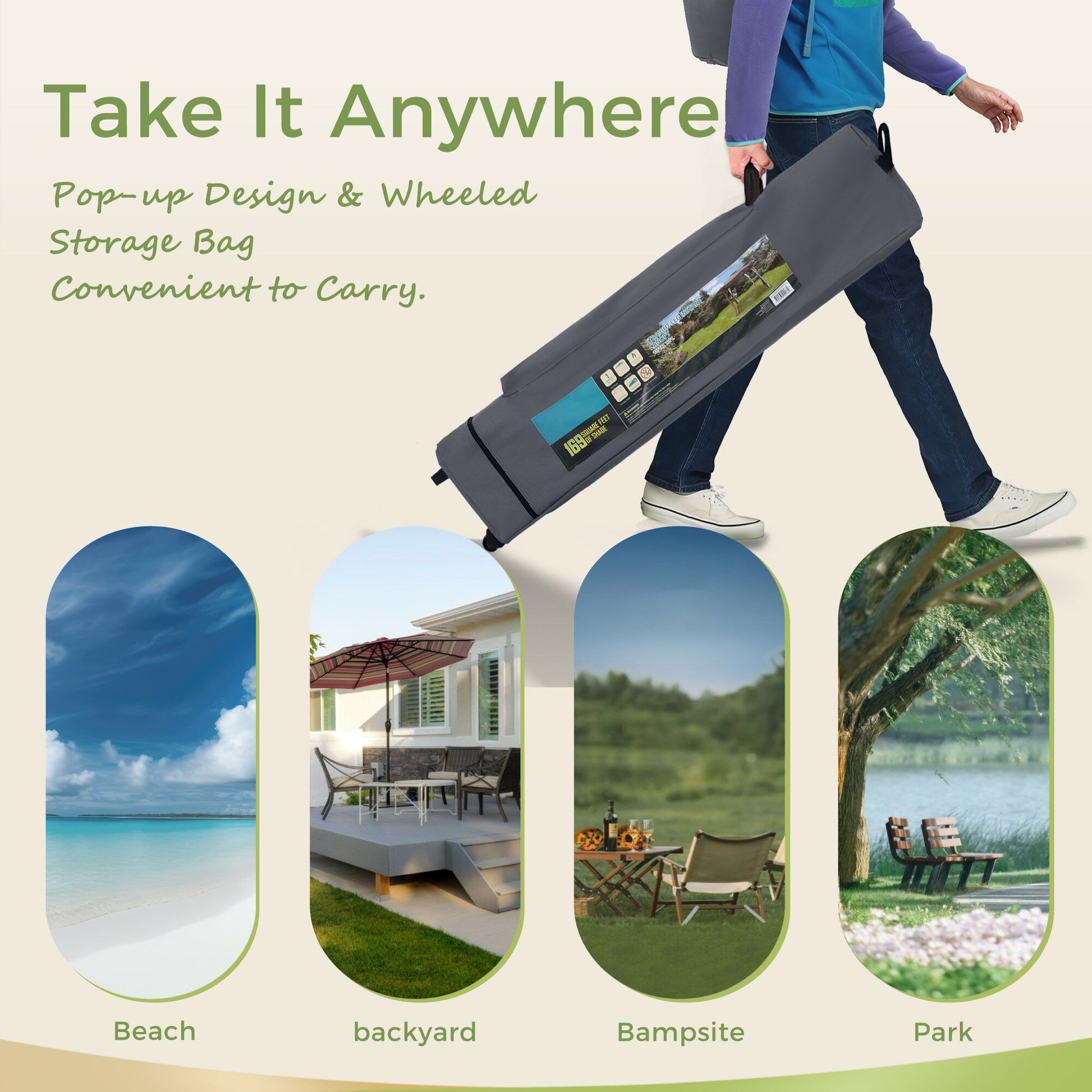 【Accessoire】 : Sac à roulettes inclus pour faciliter le transport et le rangement. N'oubliez pas de stabiliser la toile à l'aide des haubans et des piquets fournis.