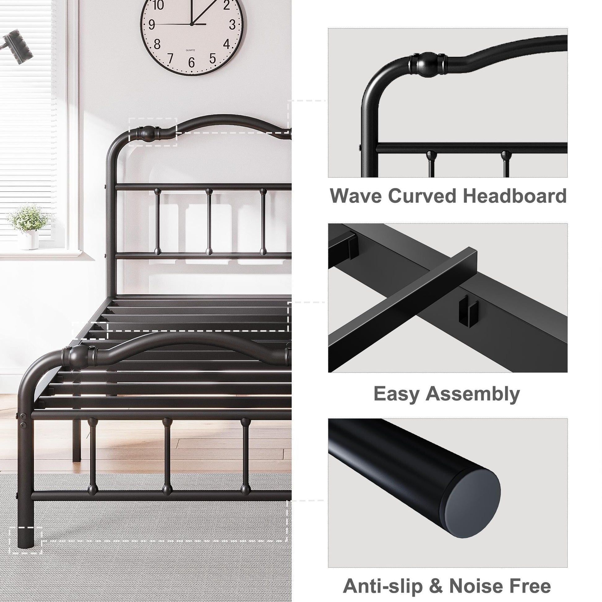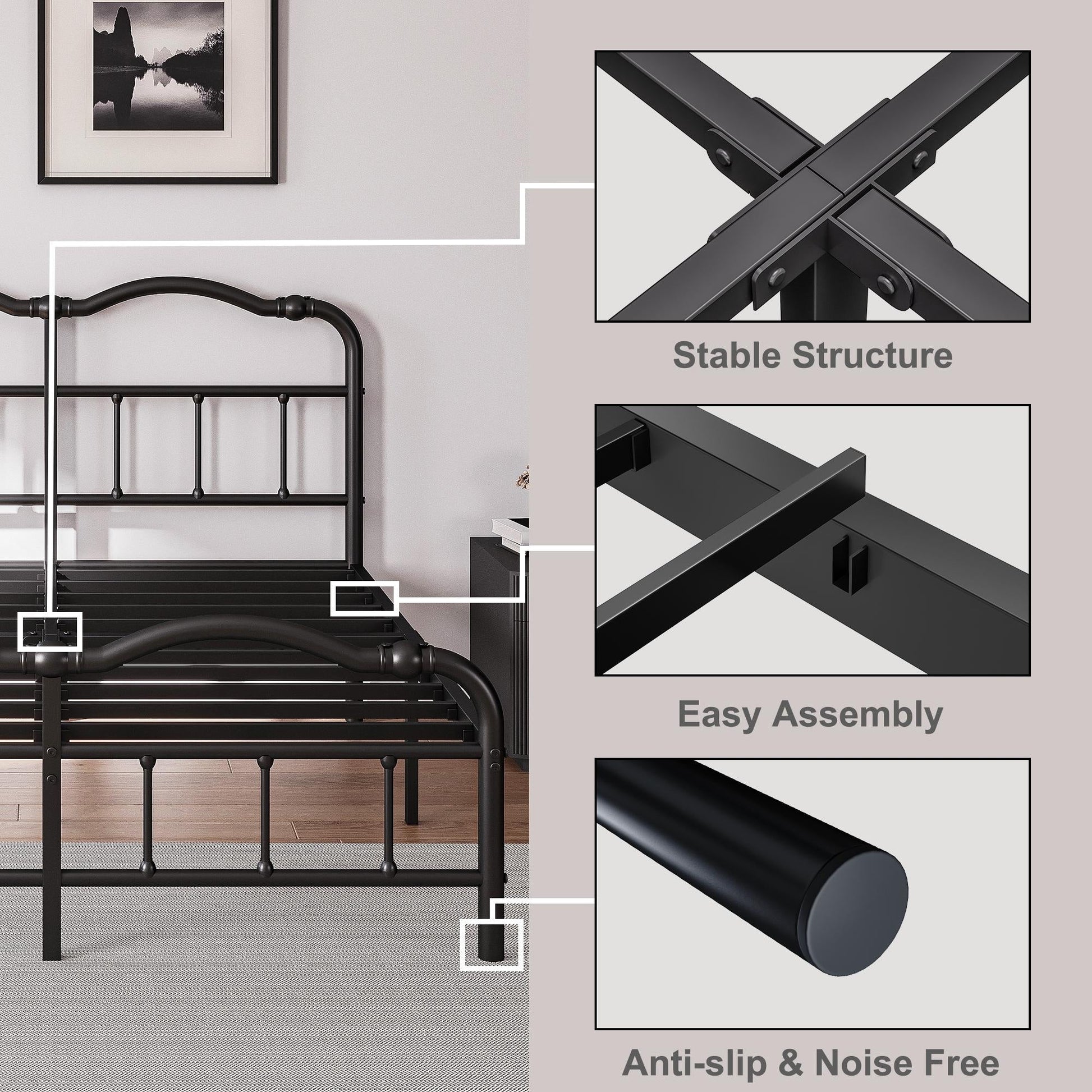 Cadre de lit en métal robuste de 35,5 cm de haut, style vintage, supporte jusqu'à 1134 kg, montage facile et silencieux.