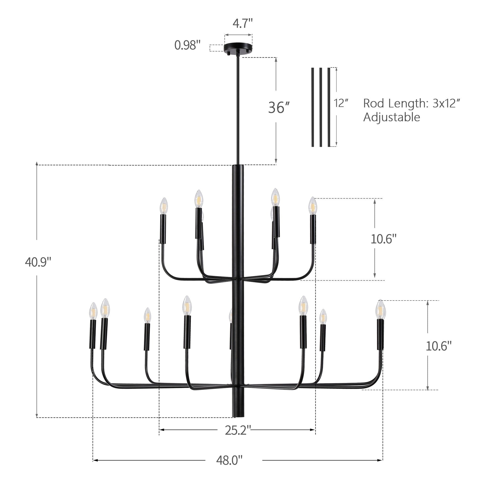 Lustre minimaliste à 15 lumières, style chandelier, 2 niveaux, design ancien - 48