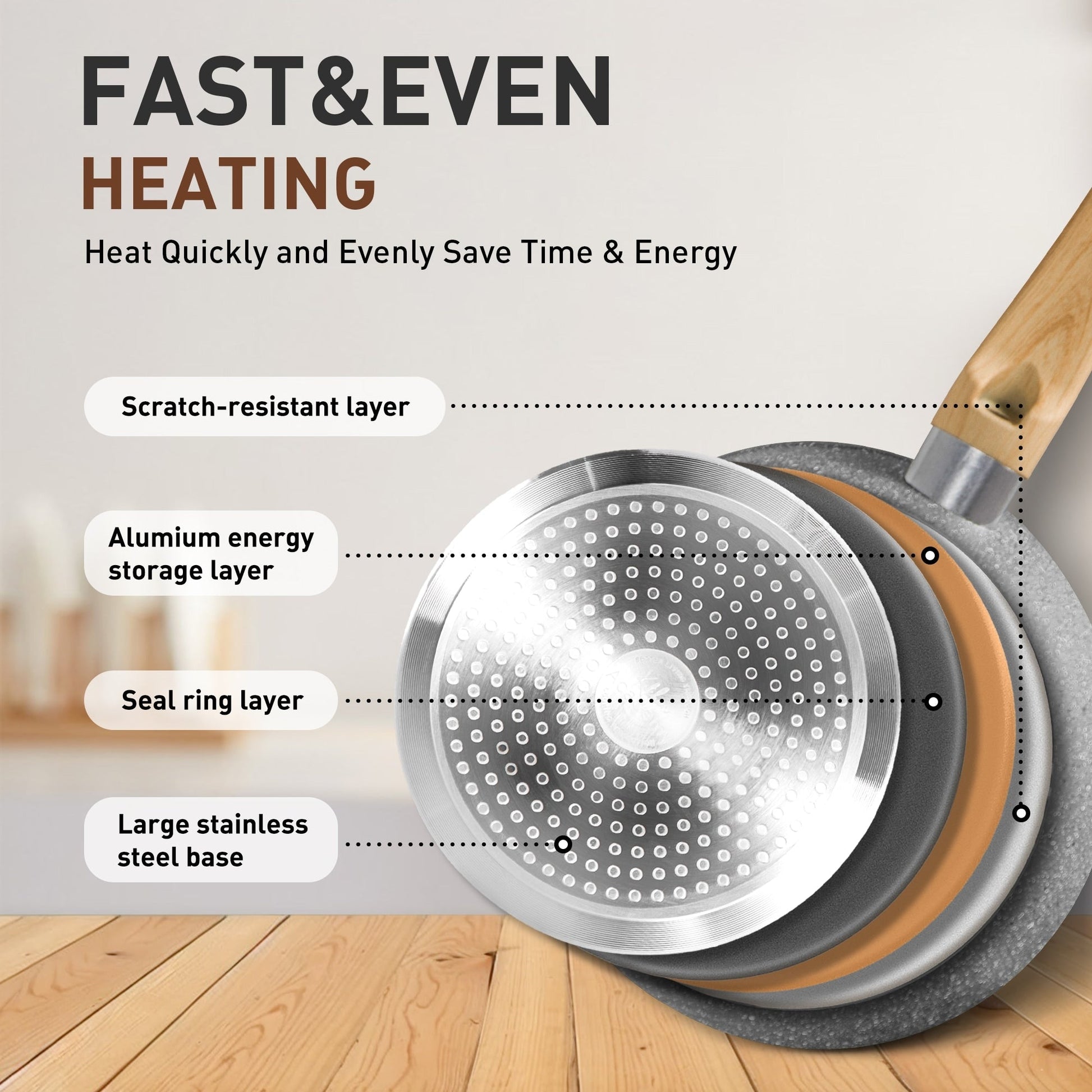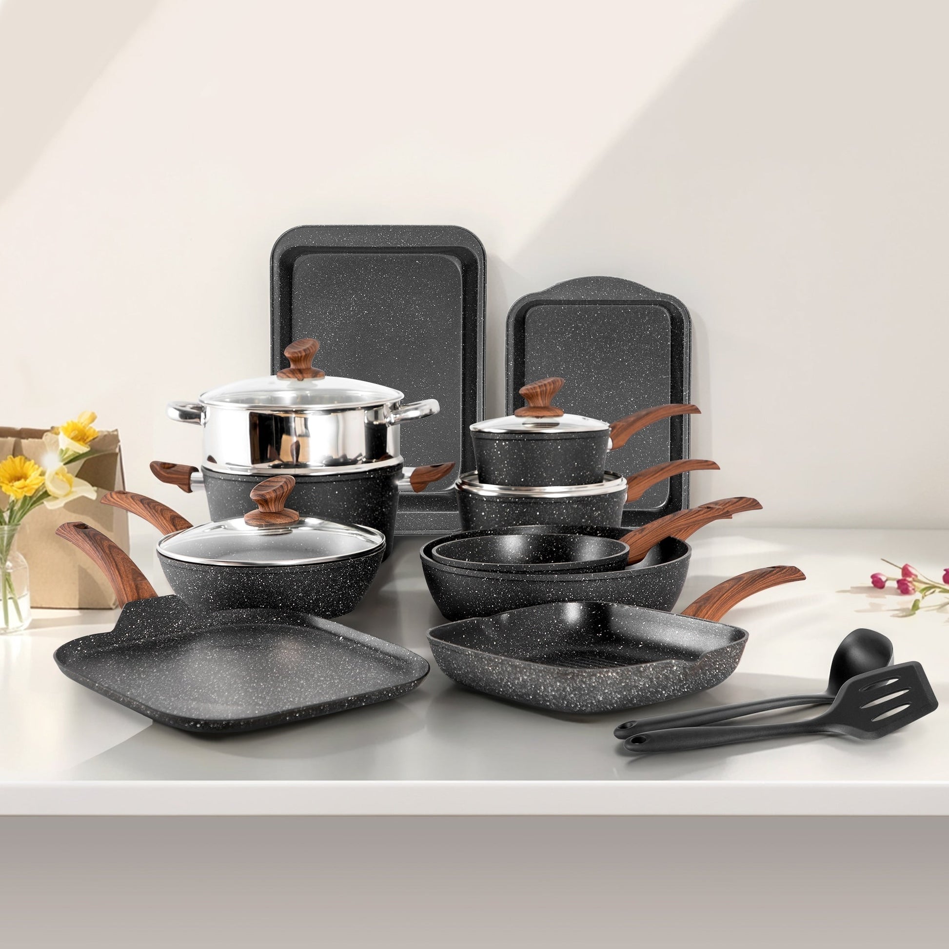 Ensemble de 17 pièces de batterie de cuisine en granit, comprenant casseroles et poêles antiadhésives