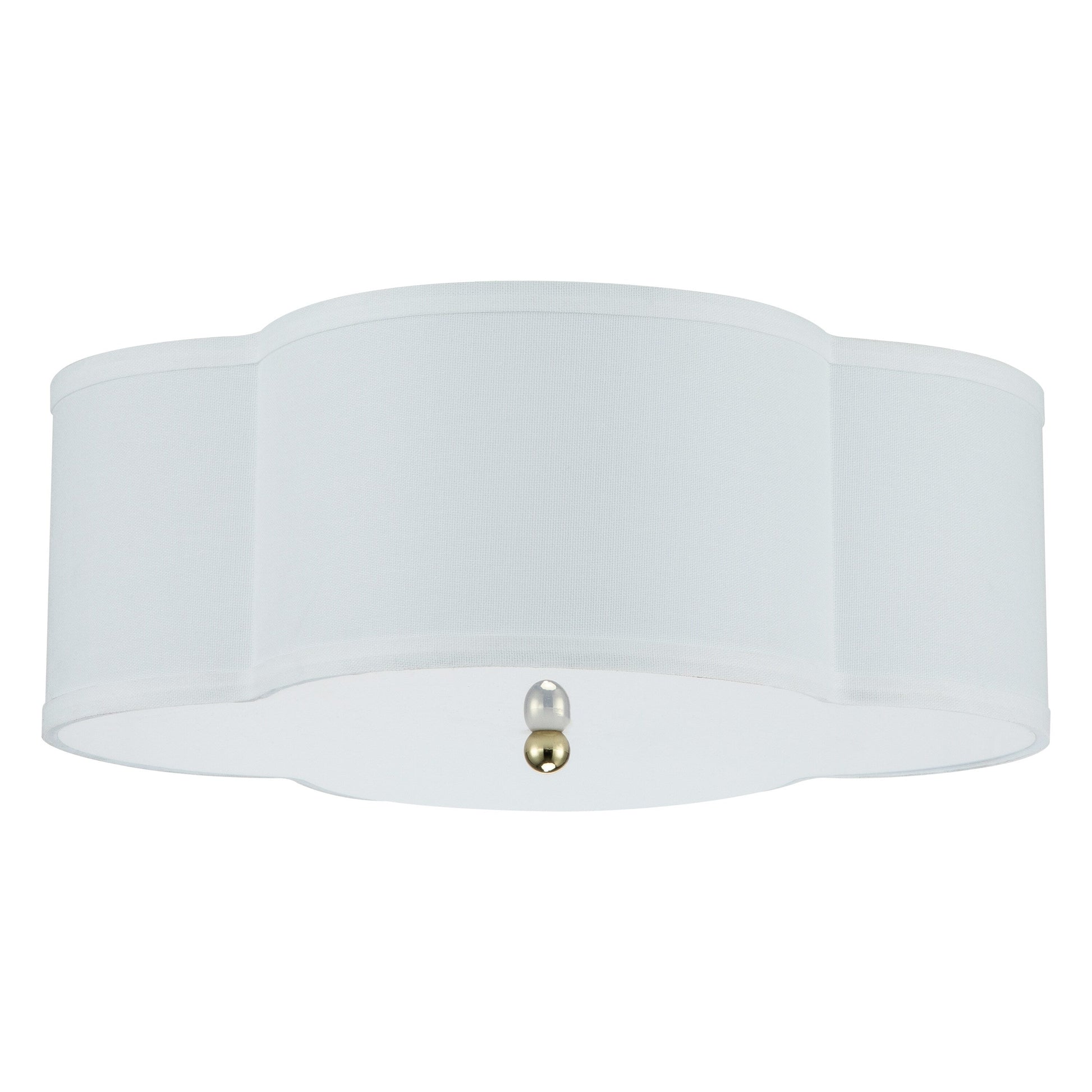 - Abat-jour en lin blanc avec accents dorés.