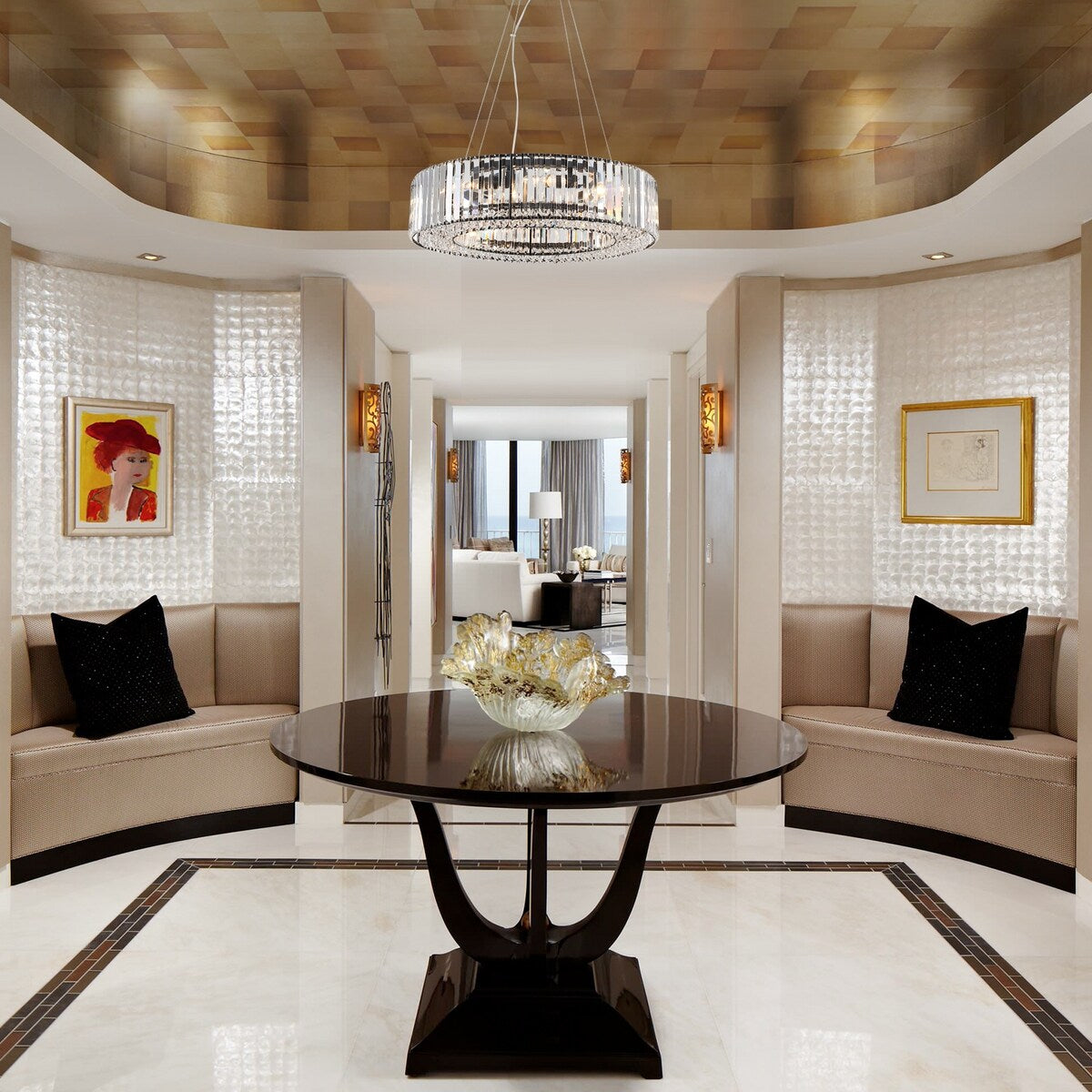- Design élégant : Avec sa forme de tambour réalisée en fer et en cristal, ce lustre dégage une élégance et un raffinement exceptionnels, apportant une touche de luxe à tout espace.