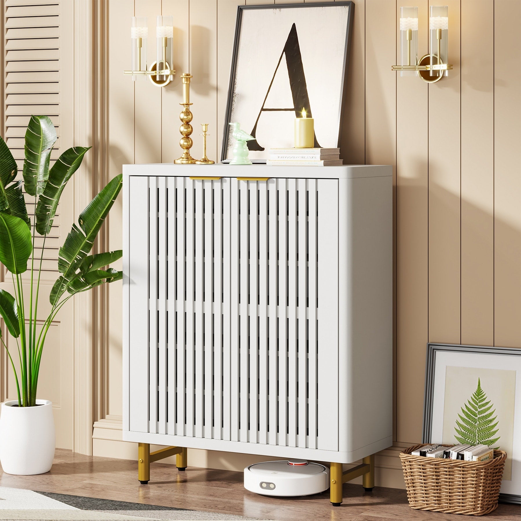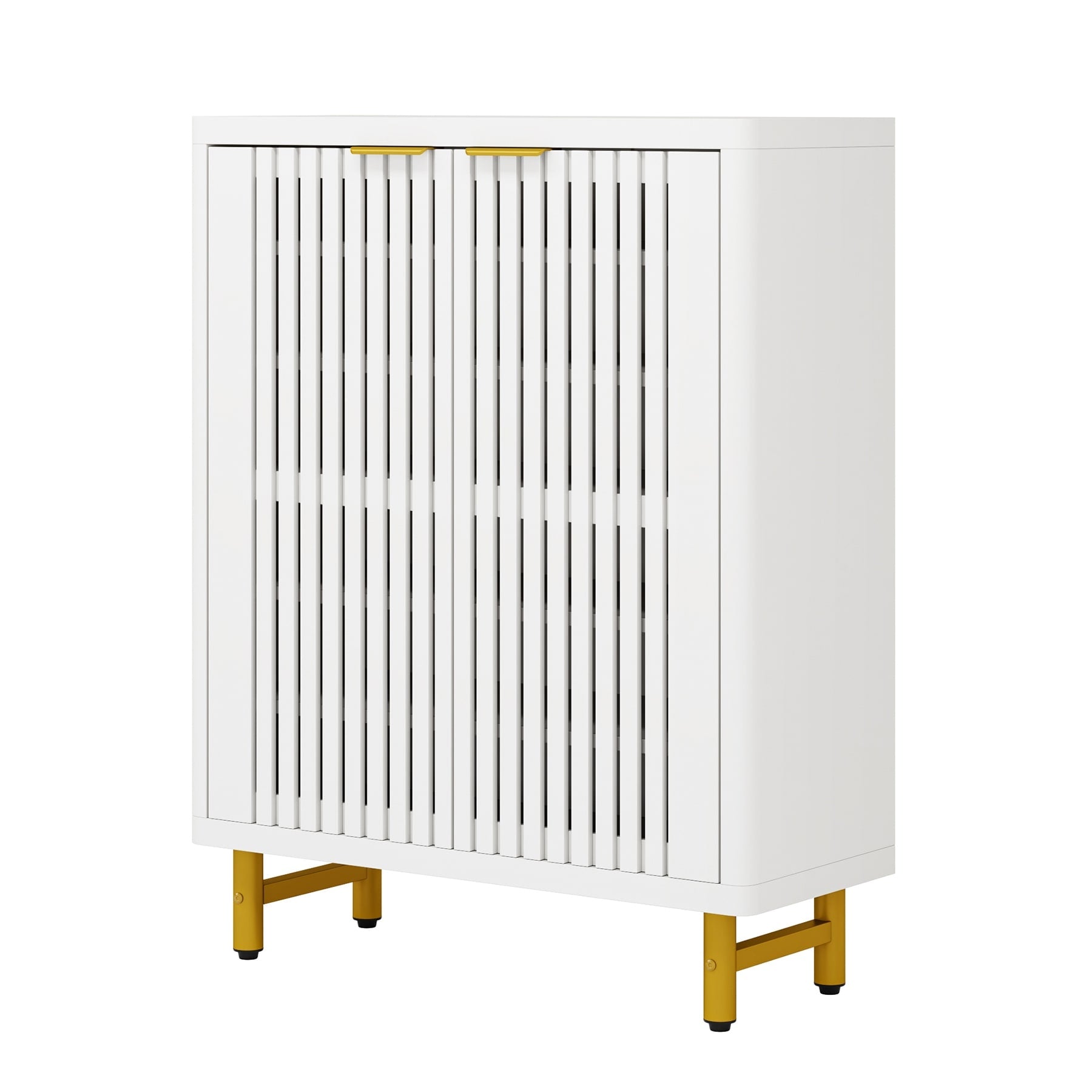 Découvrez l'alliance parfaite du design moderne et de la praticité avec notre meuble à chaussures à deux portes. Ses portes, ornées d'un motif ajouré à rayures, confèrent à ce meuble une élégance raffinée. Derrière ces portes se cachent cinq étagères spacieuses et réglables, offrant un espace de rangement idéal pour votre collection de chaussures. Fabriqué en bois d'ingénierie durable et soutenu par des pieds en métal robustes, ce meuble à chaussures est conçu pour durer. Ses dimensions (35 cm de profondeur x 85 cm de largeur x 110 cm de hauteur) lui permettent de s'intégrer facilement dans tous les espaces. Le colis comprend des patins de protection et une notice de montage claire et détaillée.
