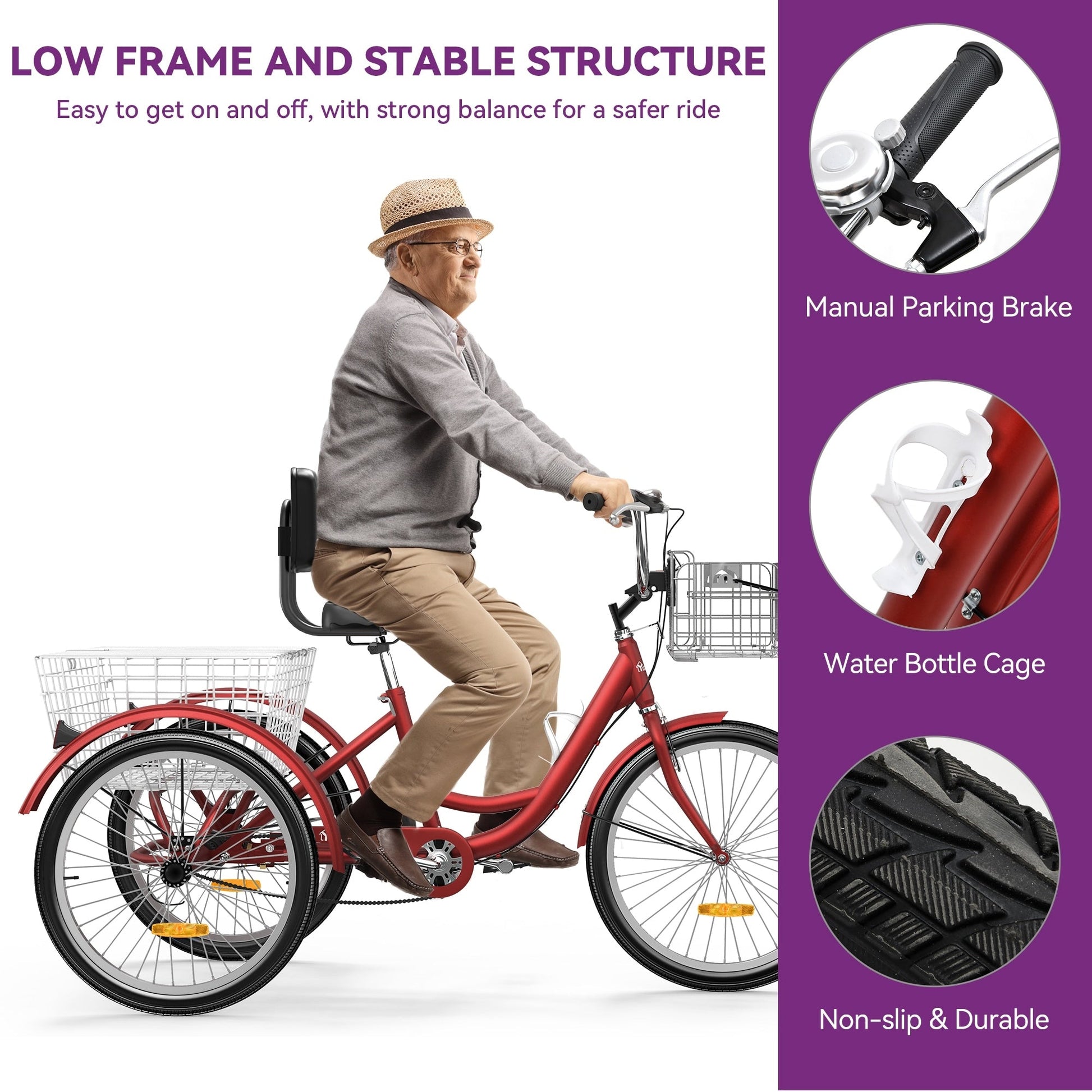 Ce tricycle est idéal pour les balades, le sport, les courses, les pique-niques et bien plus encore. Avec lui, explorez les environs en toute liberté, profitez de la balade et savourez le soleil et l'air frais.
