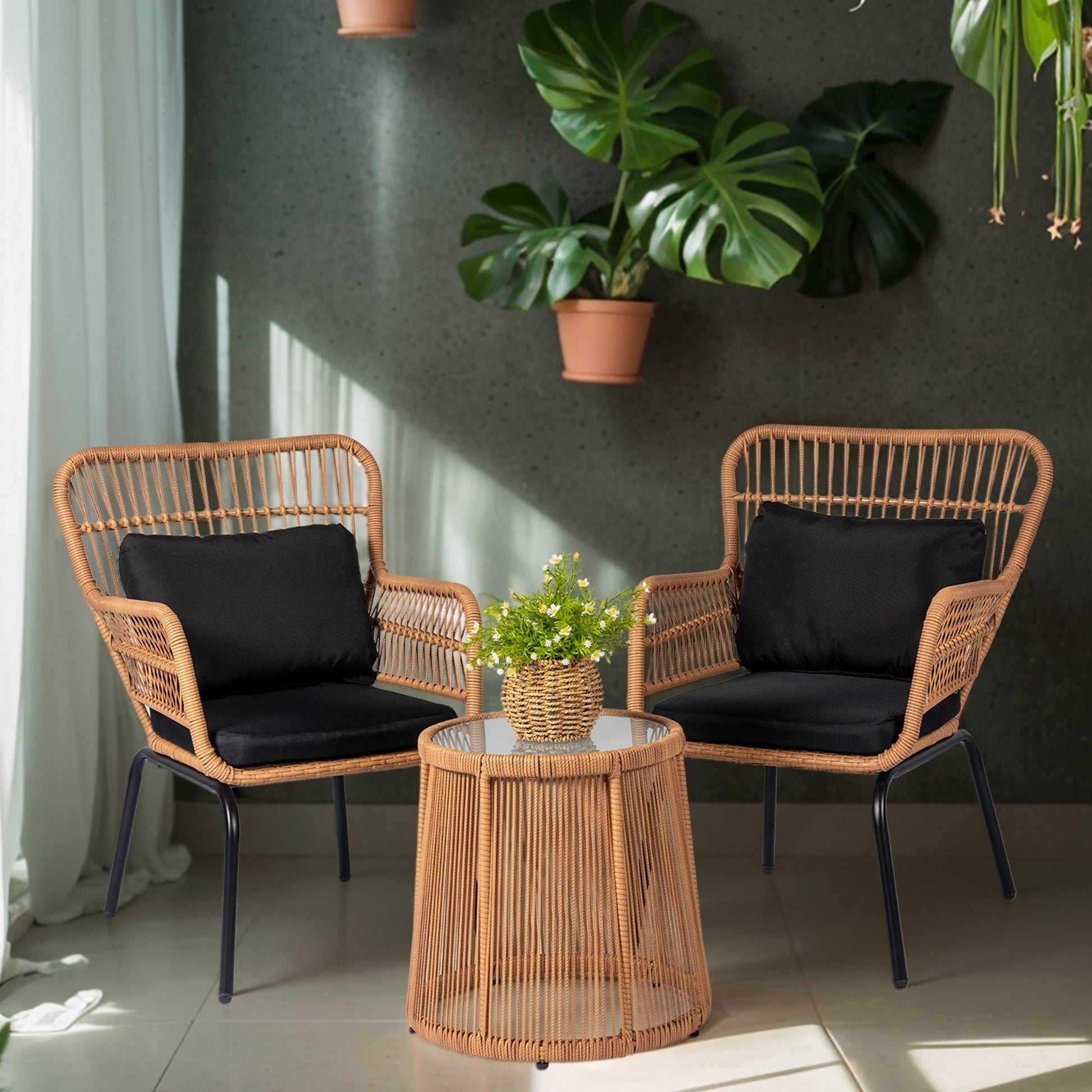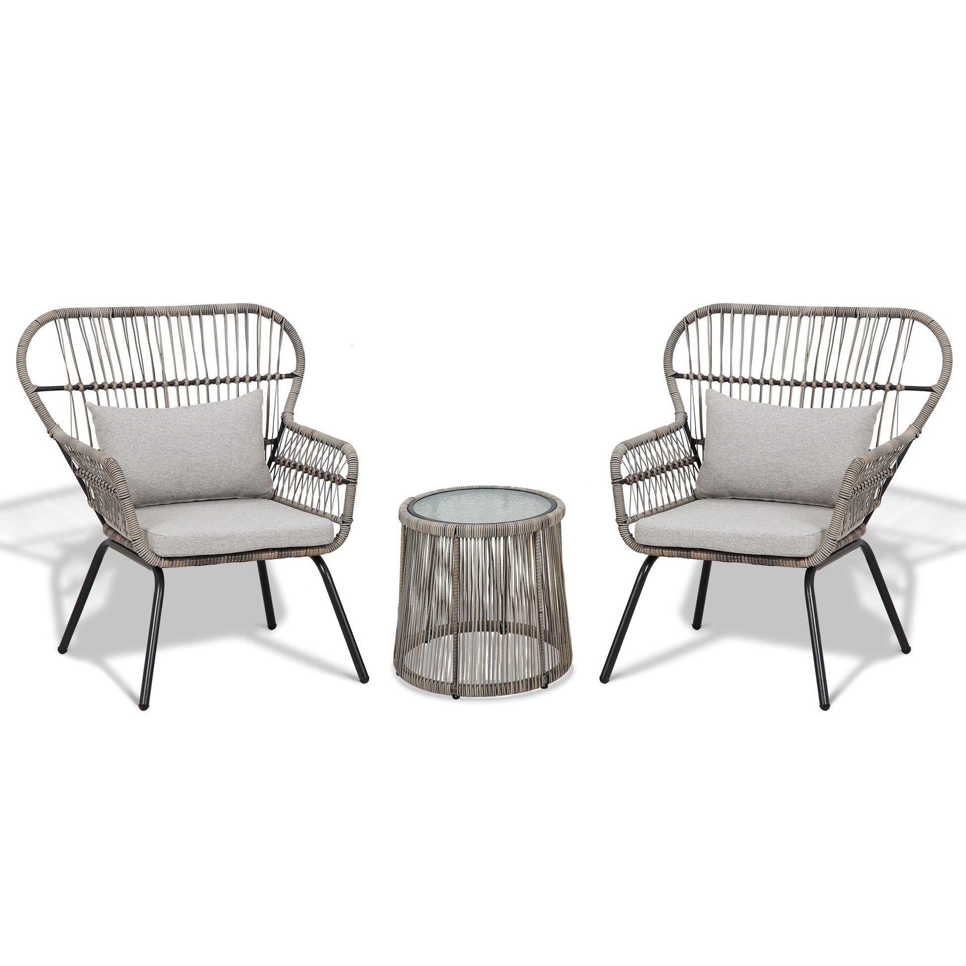 - Ensemble bistro de conversation en osier tressé 3 pièces pour extérieur, mobilier de patio en rotin résistant aux intempéries avec table pour balcon, jardin, véranda, cour arrière.