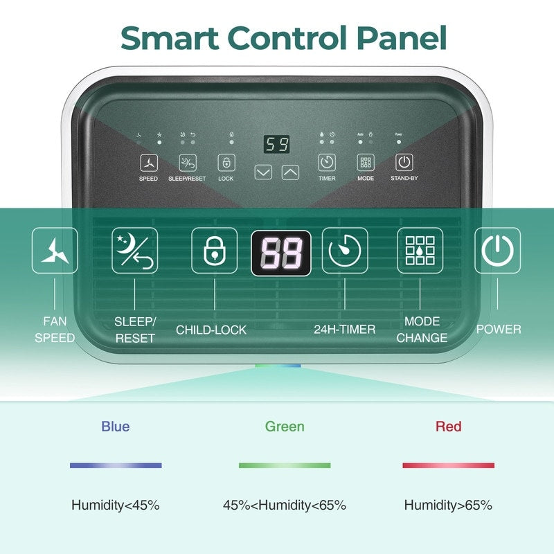 【DÉSHUMIDIFICATEURS MULTIPLES 3500 PI²】 - Nos déshumidificateurs sont équipés de 3 MODES au choix : AUTO, CONTINU et VEILLE. Ils possèdent une capacité de déshumidification très performante. À 18 °C et 60 % d'humidité, ils peuvent extraire jusqu'à 7 litres d'humidité par jour. À 30 °C et 80 % d'humidité, ils peuvent extraire jusqu'à 20 litres d'humidité par jour. Ce sont des déshumidificateurs idéaux pour les sous-sols, les bureaux, les maisons, les salles de bain, les chambres, les cuisines, les réserves, les salons, les buanderies, les caves, etc.