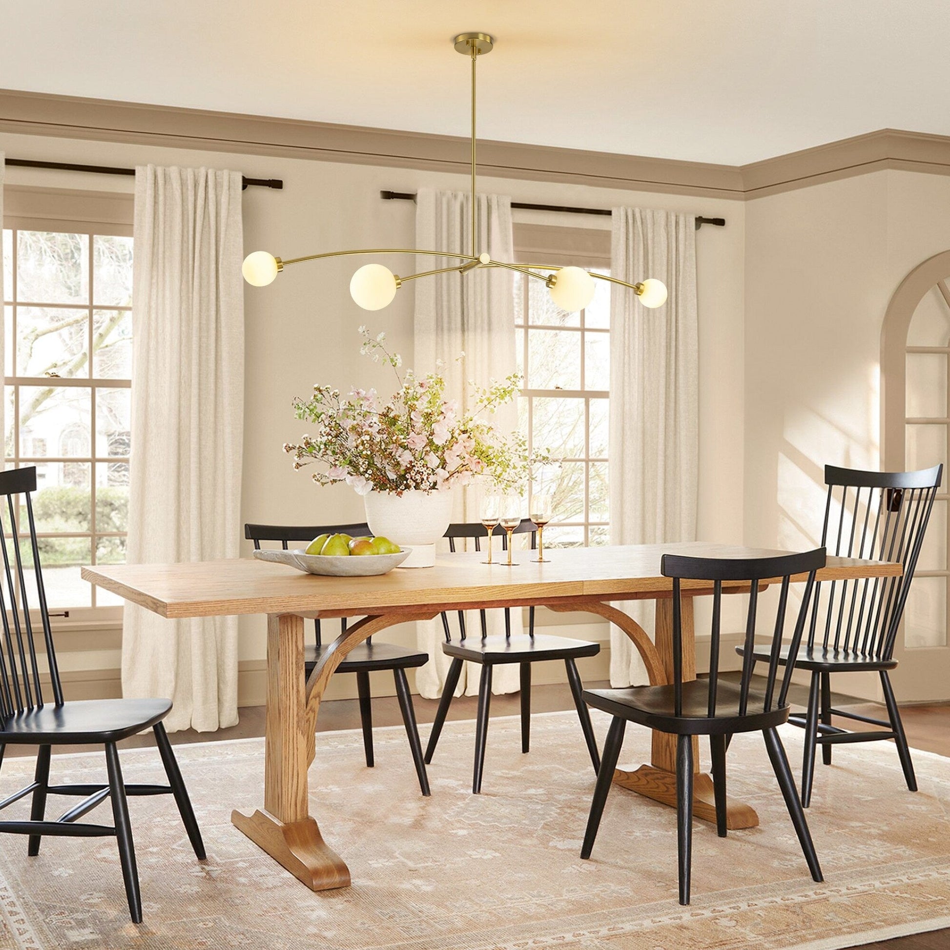 - Design minimaliste Sputnik : Avec sa structure légèrement incurvée et ses quatre globes en verre dépoli, ce lustre apporte une touche de charme sophistiquée et discrète à votre espace.