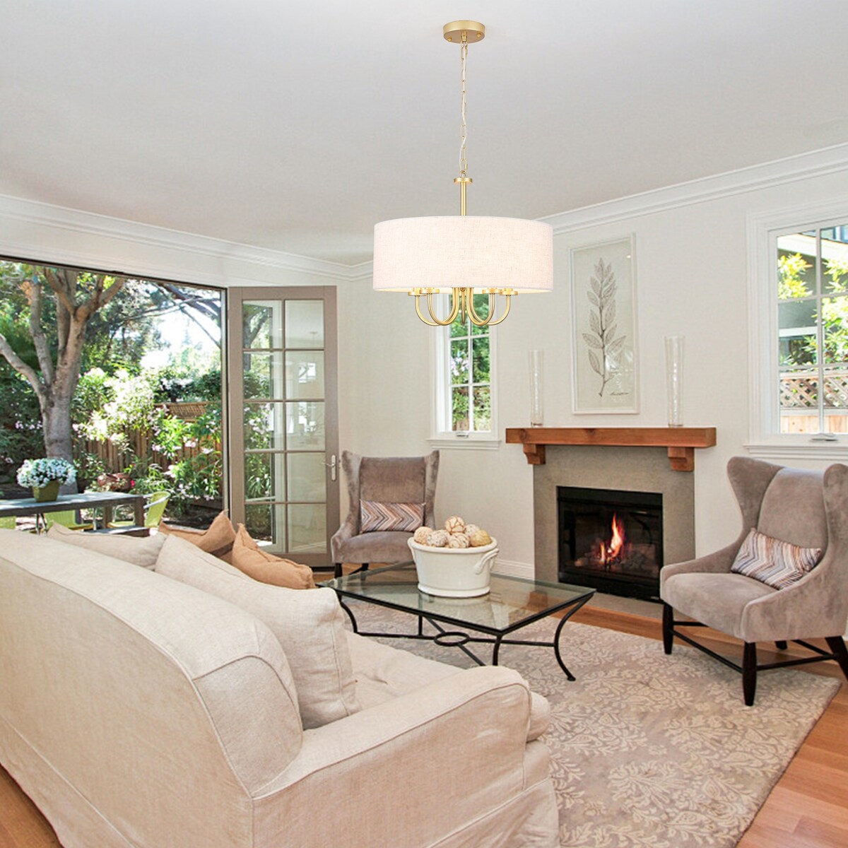 Doté d'un abat-jour cylindrique en lin, ce lustre moderne arbore des éléments de design inspirés du style bord de mer. Cette suspension de style campagnard est composée de métal et d'abat-jour en lin, et le contraste entre la couleur et la texture de l'abat-jour et des éléments métalliques crée un effet visuel original. Ce style est idéal pour les escapades en bord de mer, les lofts décontractés et les maisons de campagne rustiques. Une fois installé, il peut accueillir cinq ampoules de type bougie jusqu'à 60 W (ampoules non incluses), créant ainsi une ambiance chaleureuse à la lueur des bougies dans votre intérieur.