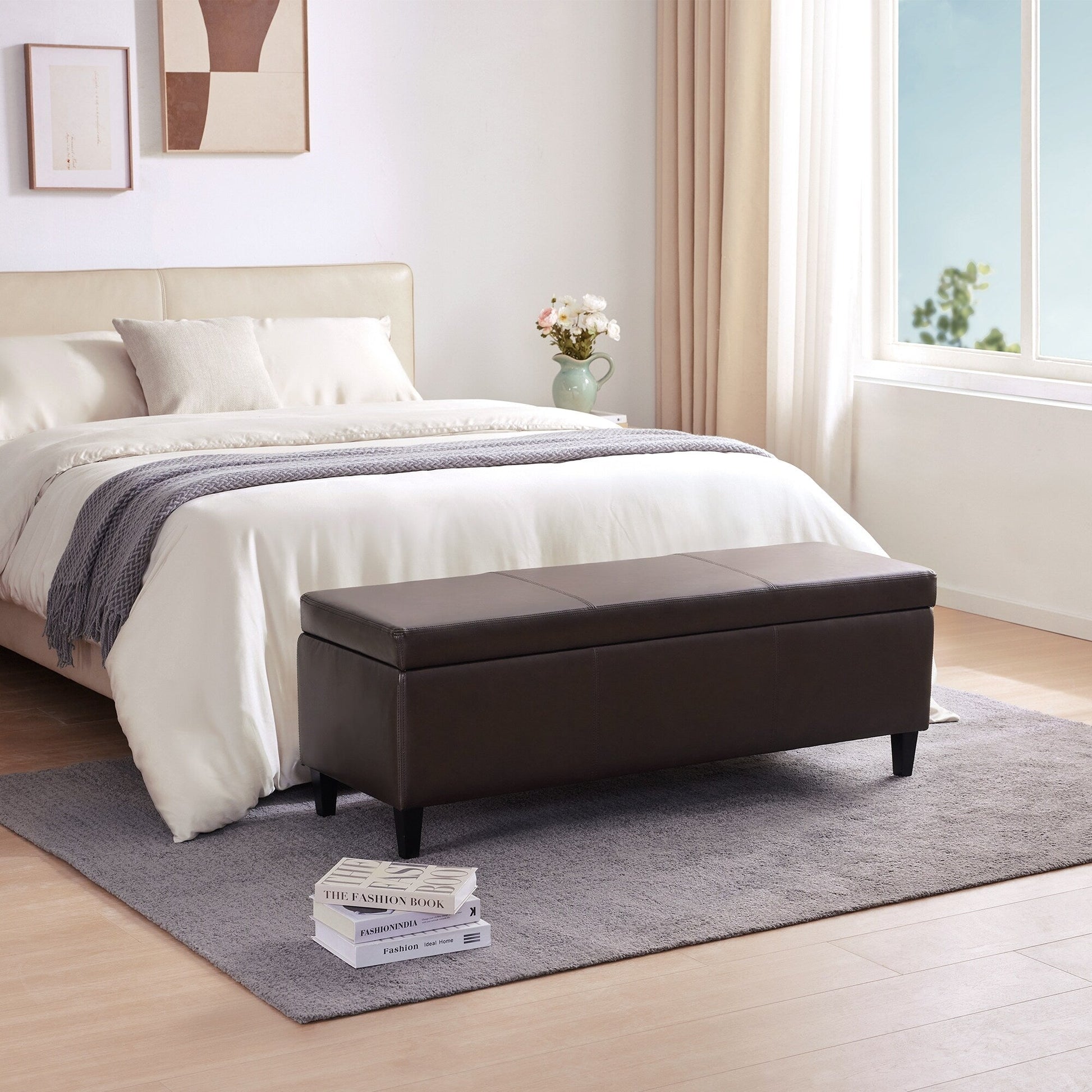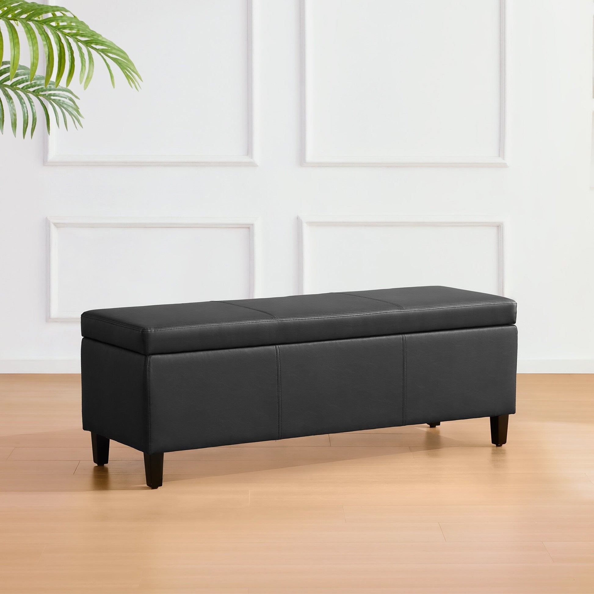 Pouf de rangement rectangulaire capitonné en similicuir (50,3 x 17,50 x 18 cm)