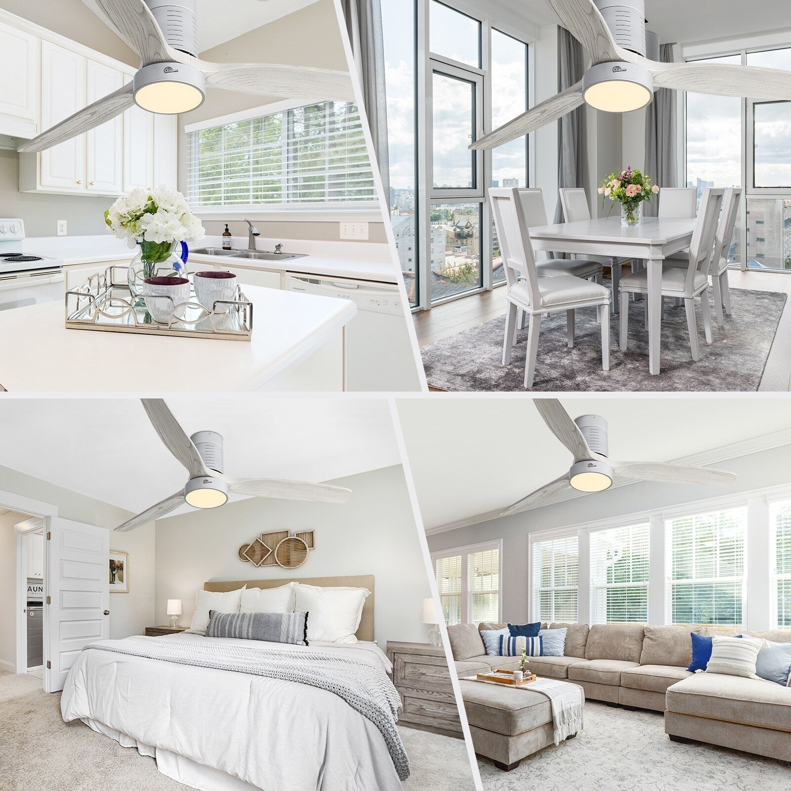 Ventilateur de plafond encastré de style campagnard de 132 cm (52 pouces) avec lumière et télécommande, moteur CC réversible