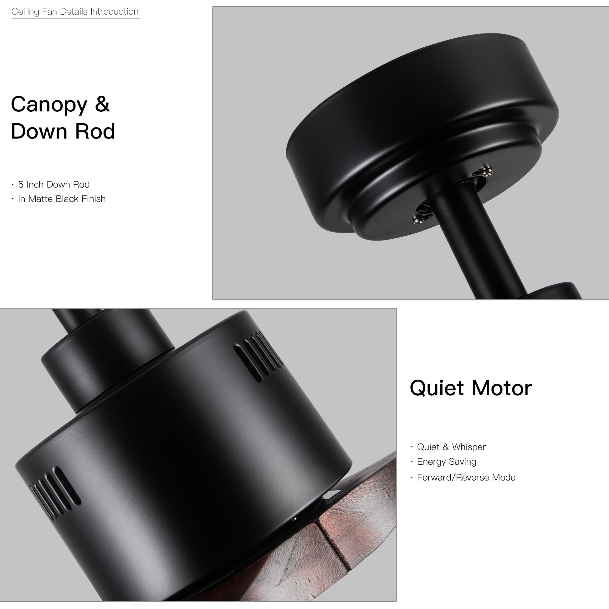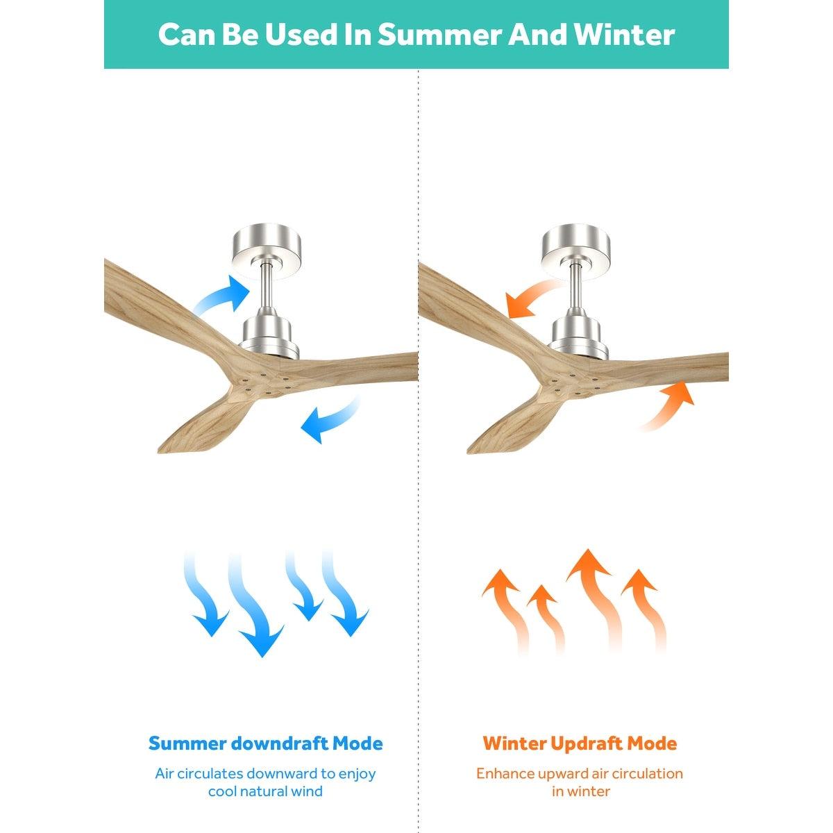Ventilateur de plafond moderne de 132 cm (52 pouces) en bois massif et ABS avec télécommande (sans éclairage), 6 vitesses de ventilation et flux d'air réversible.