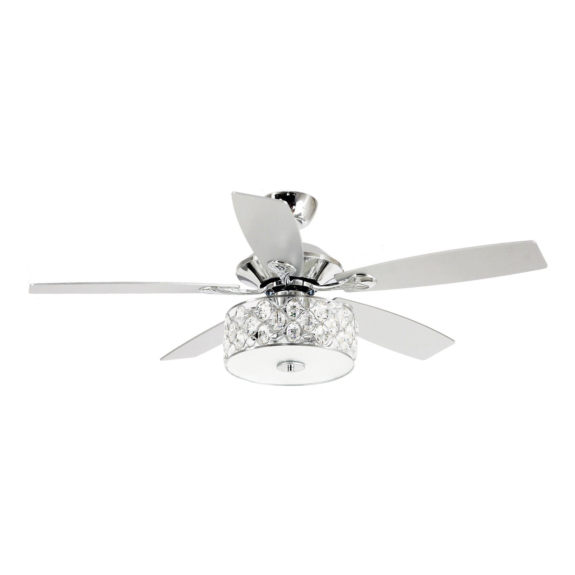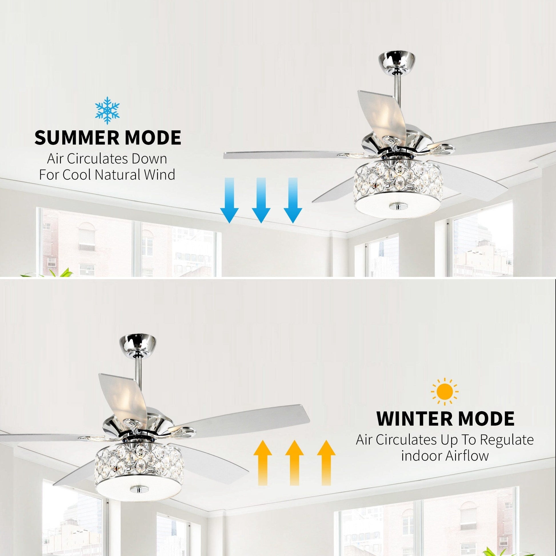 Lustre moderne à 4 lumières de 52 pouces avec ventilateur de plafond en cristal et télécommande