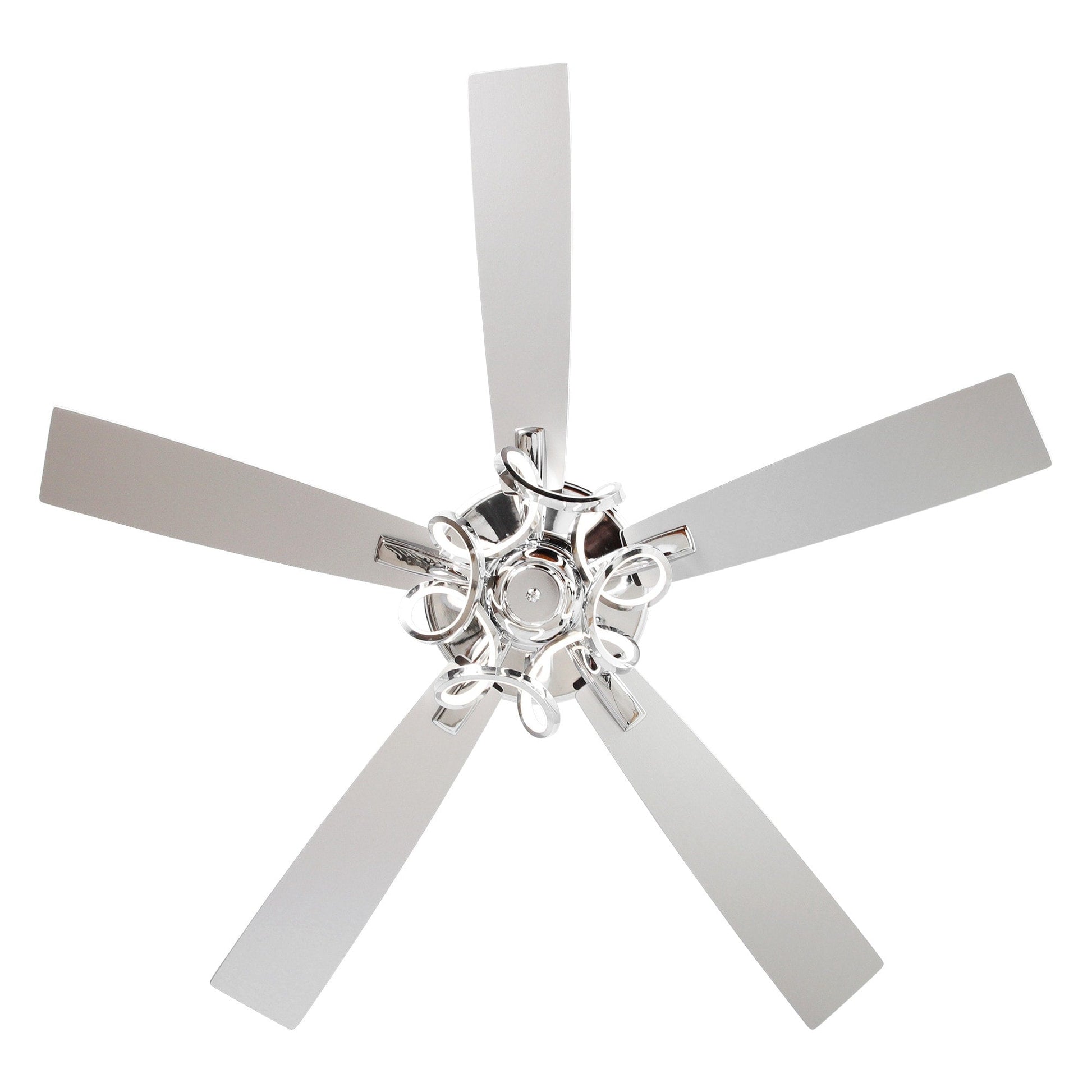 Ventilateur de plafond intérieur moderne chromé/noir de 52 pouces avec éclairage LED à intensité variable et télécommande