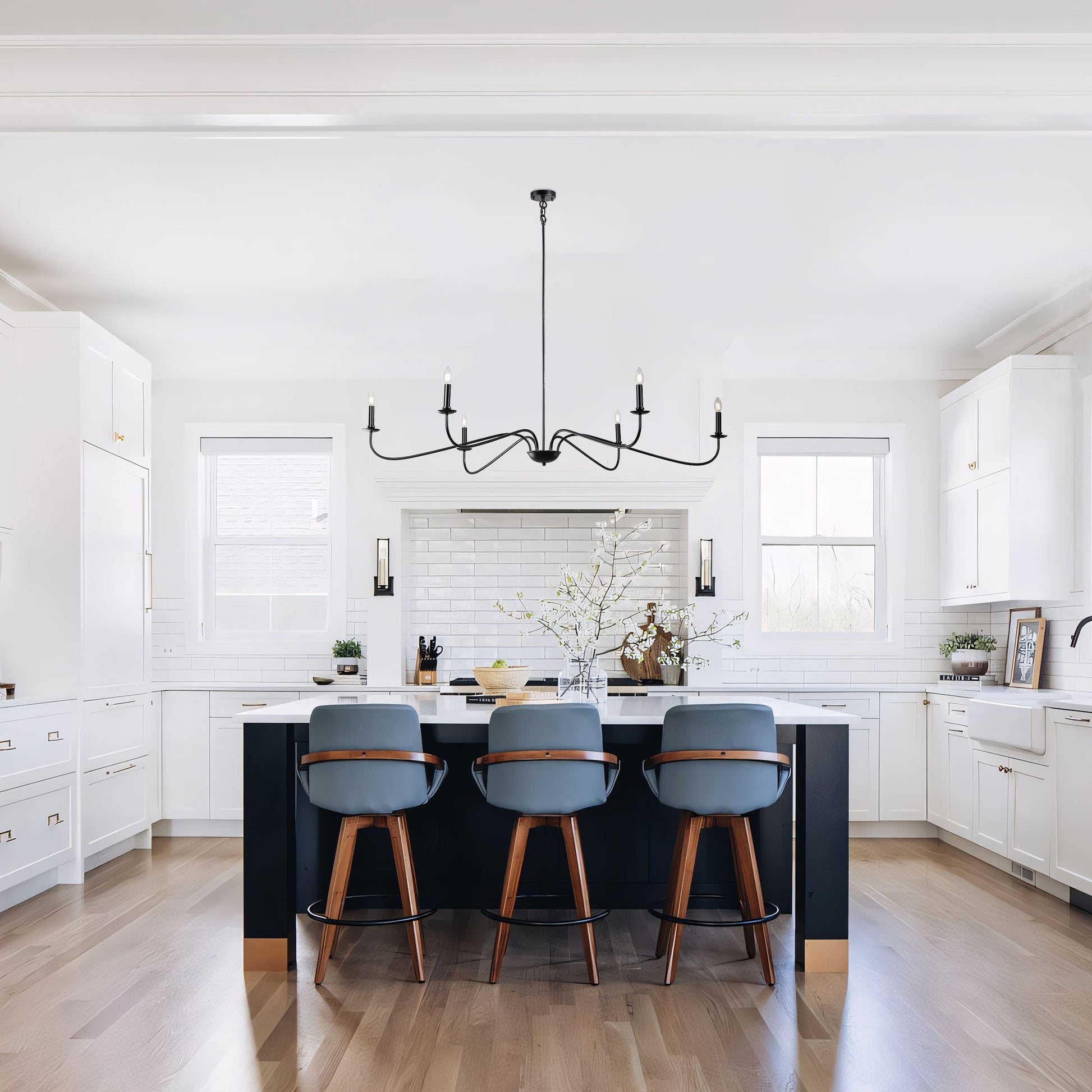 D'une conception simple, le lustre Candler traditionnel à 6 lumières confère une ambiance élégante à votre îlot de cuisine, votre salle à manger ou votre entrée. Son design sobre met en valeur des bras métalliques supportant des ampoules candélabres apparentes, pour un charme d'antan. De plus, sa configuration polyvalente permet une installation sur des surfaces inclinées, ce qui en fait un excellent choix pour les plafonds en pente. Le matériel de fixation est inclus.