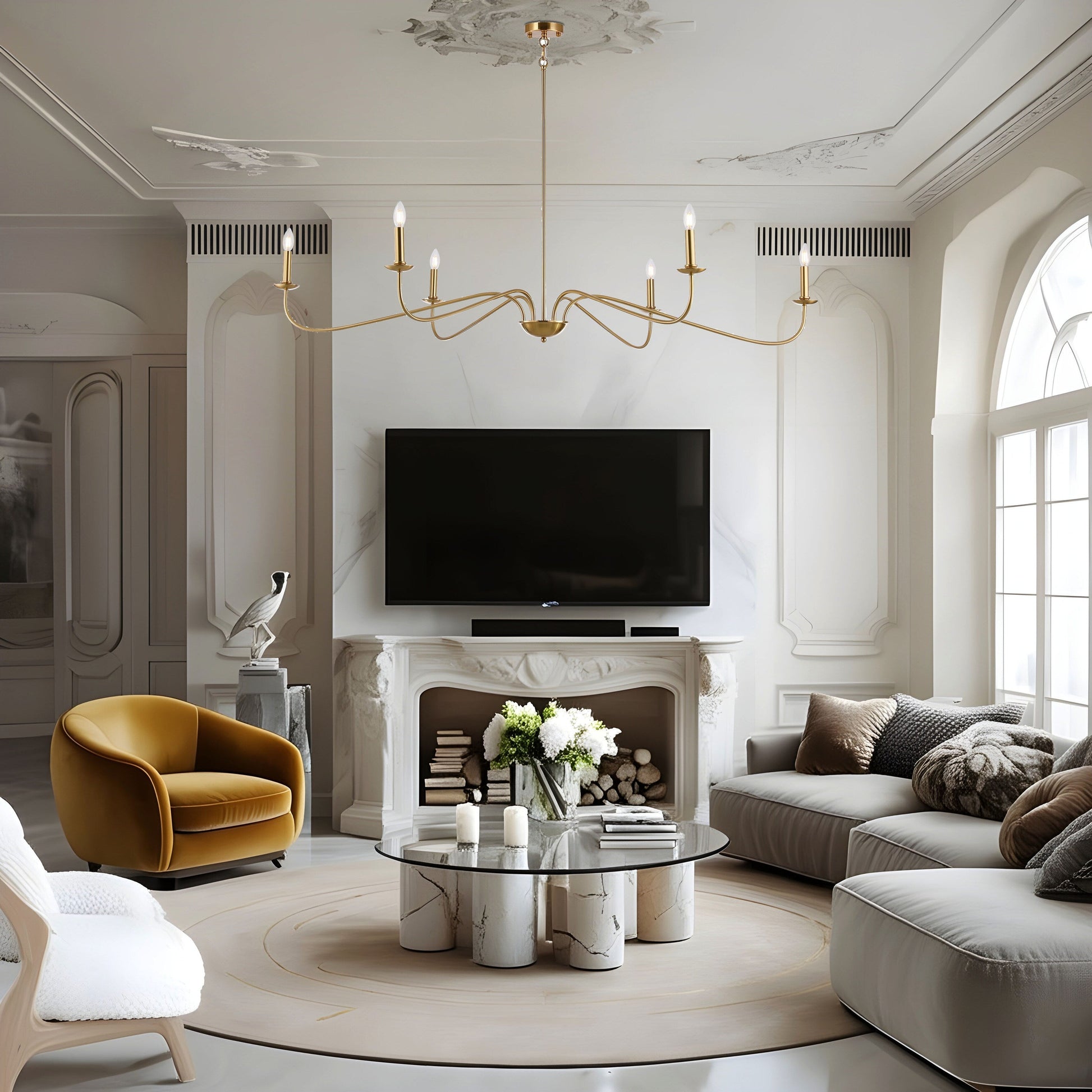 Lustre minimaliste à 6 lumières de 162,5 cm (64 pouces) en noir mat/or/chrome - Non disponible