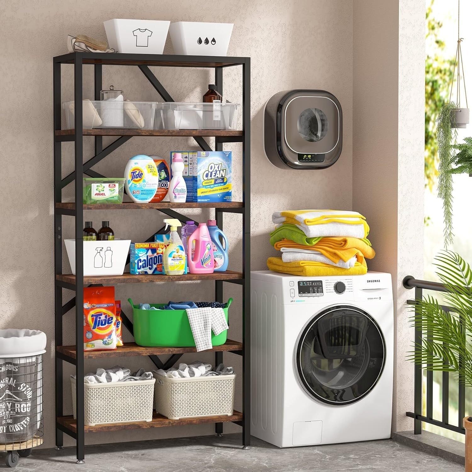Étagère industrielle de 180 cm (71 pouces), bibliothèque à 6 niveaux, étagère ouverte autoportante, étagère de rangement en bois pour chambre, bureau ou salon.