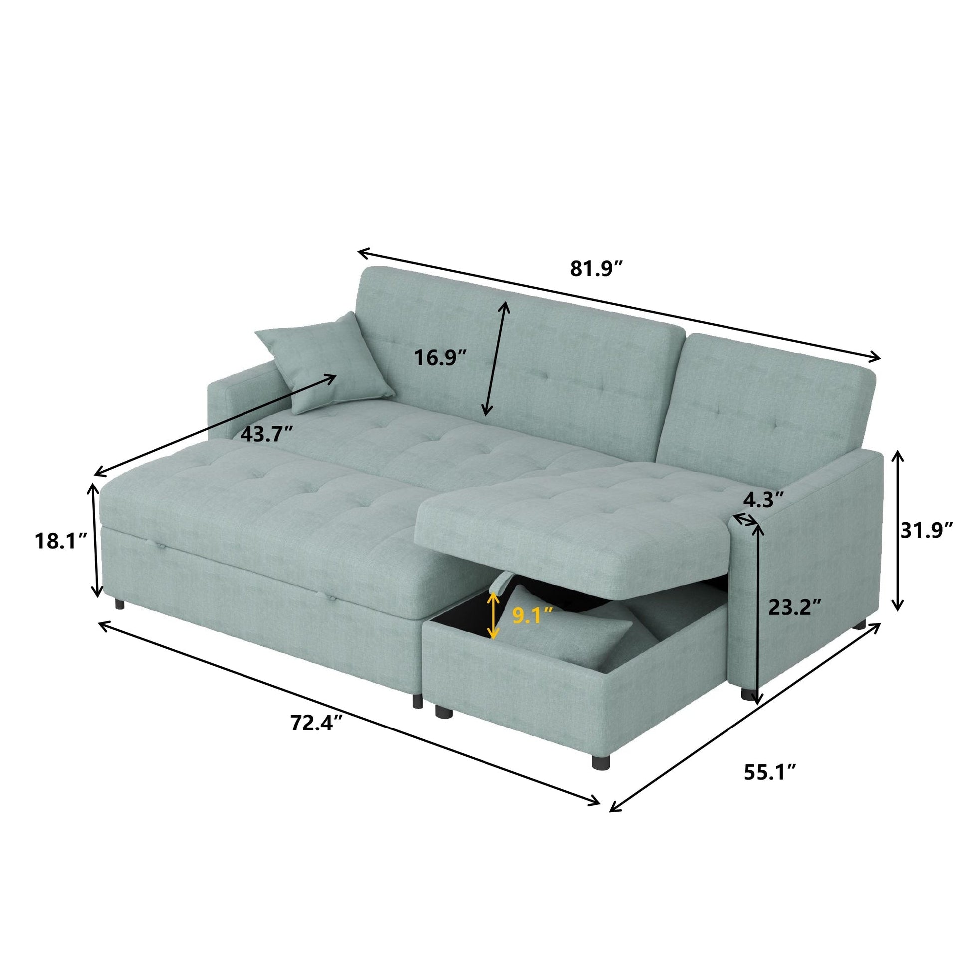 Canapé-lit réversible de 208 cm de large avec méridienne