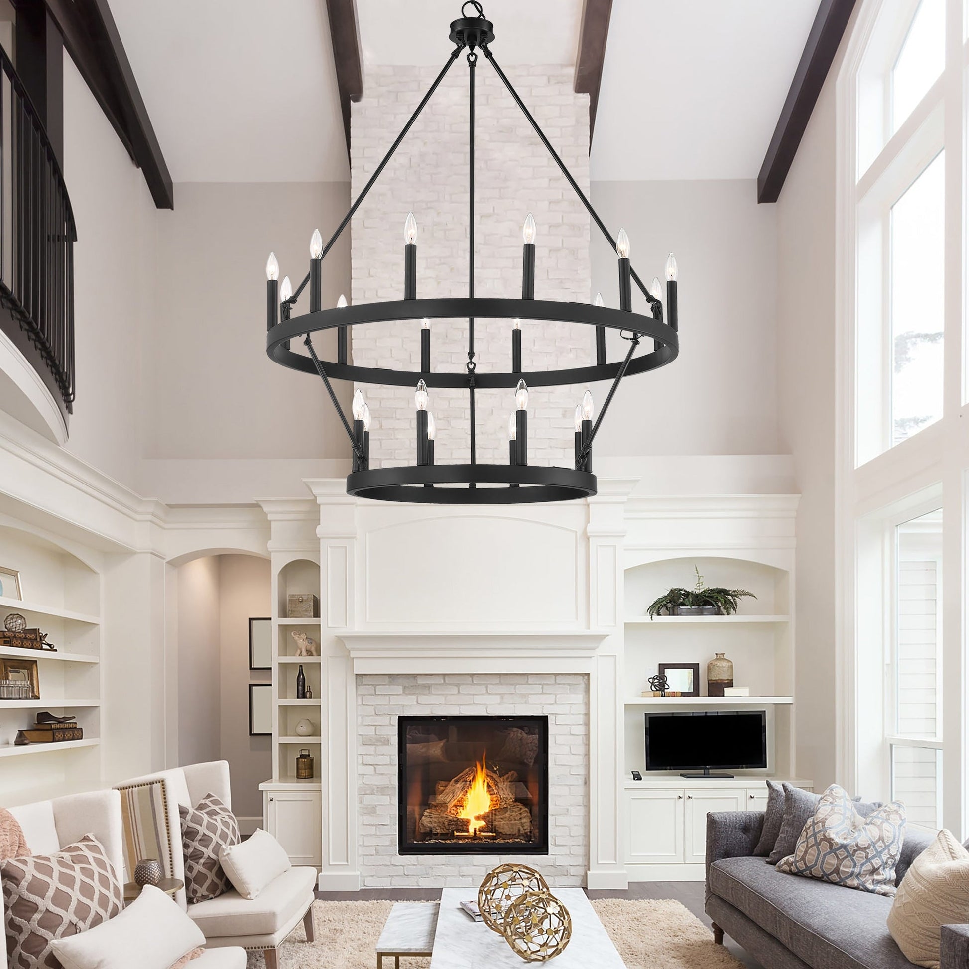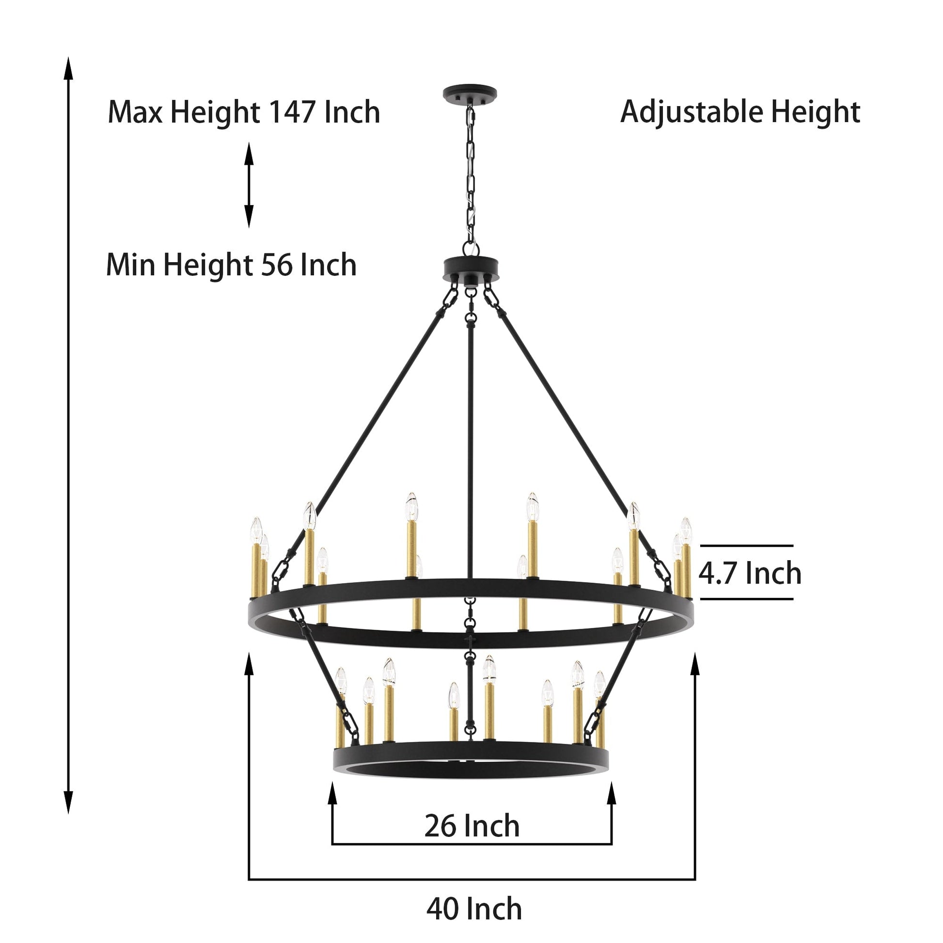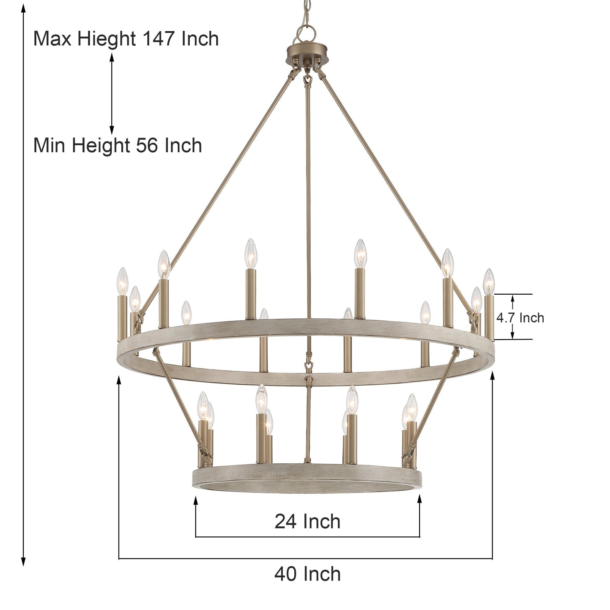 Lustre Acroma moderne à 20 lumières, style ferme, rond, 40 po, en forme de roue de chariot, homologué UL.