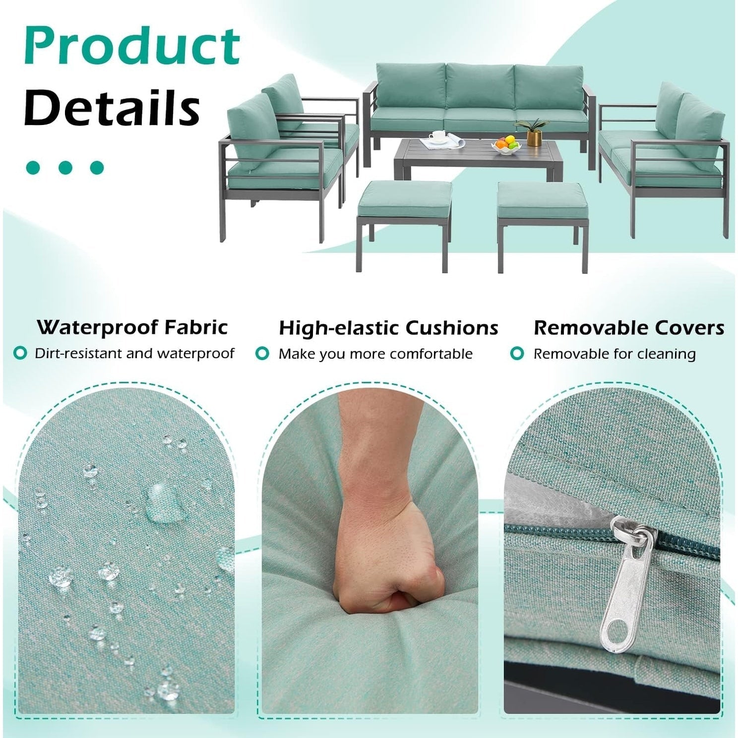 Ensemble de mobilier de patio en aluminium AECOJOY 7 pièces, ensemble de conversation d'extérieur
