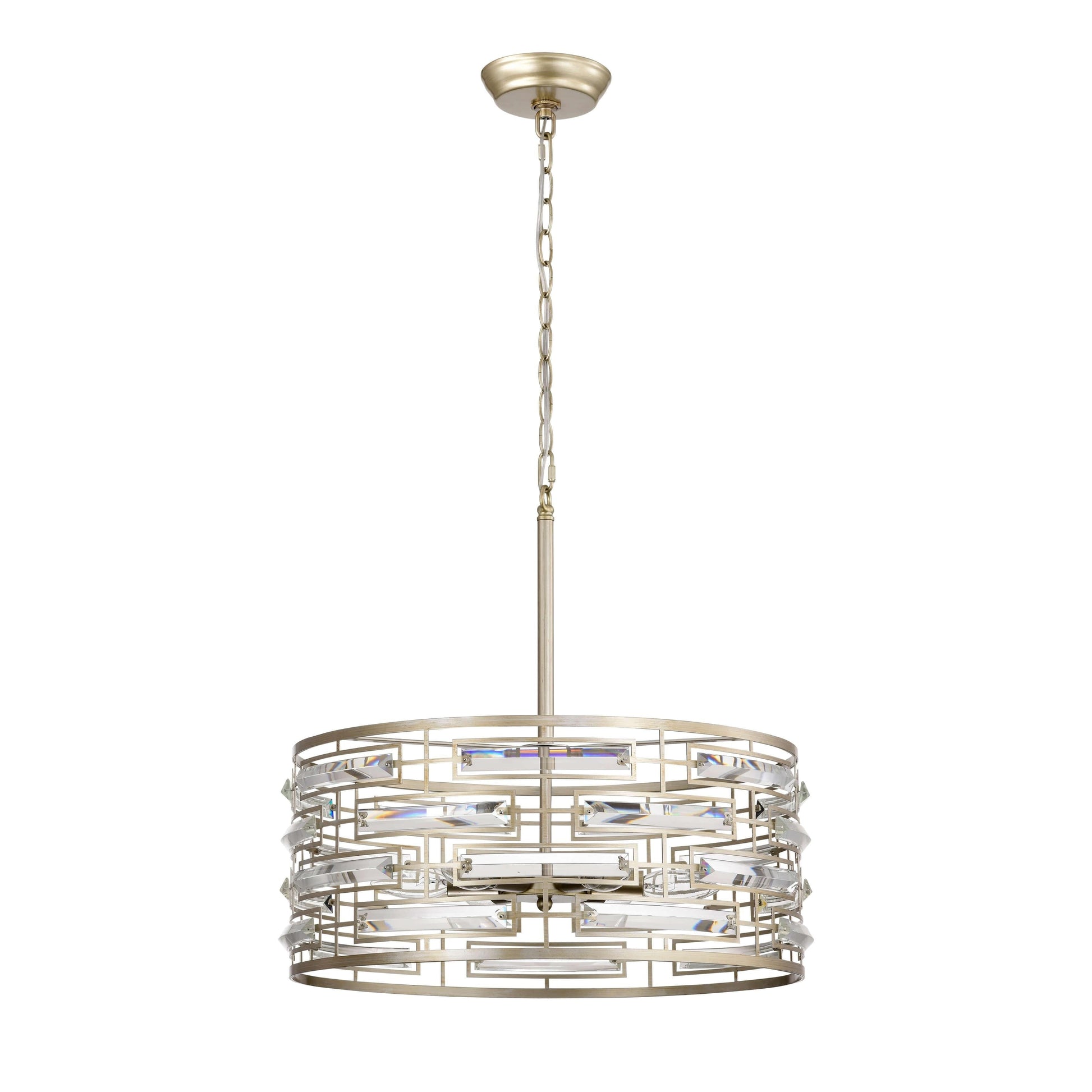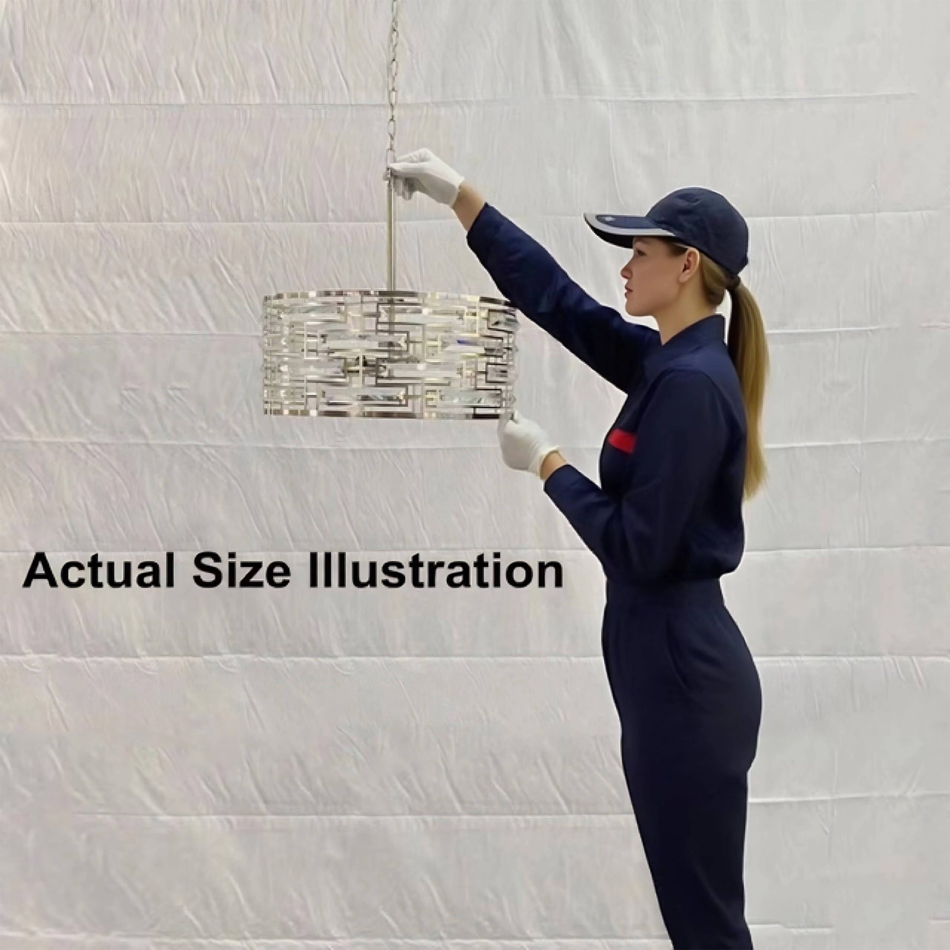 Titre : Lustre Anita à abat-jour tambour et prisme en verre transparent