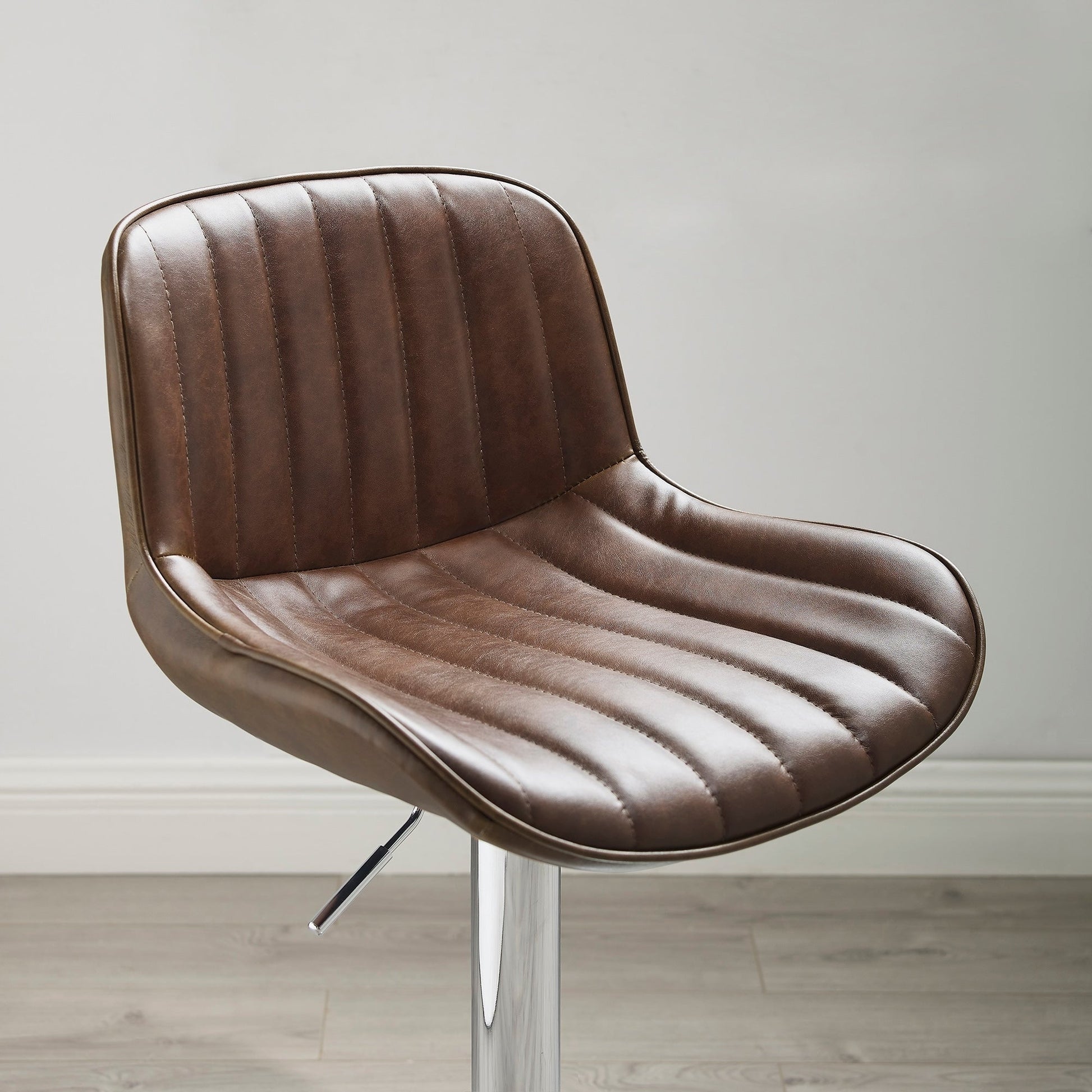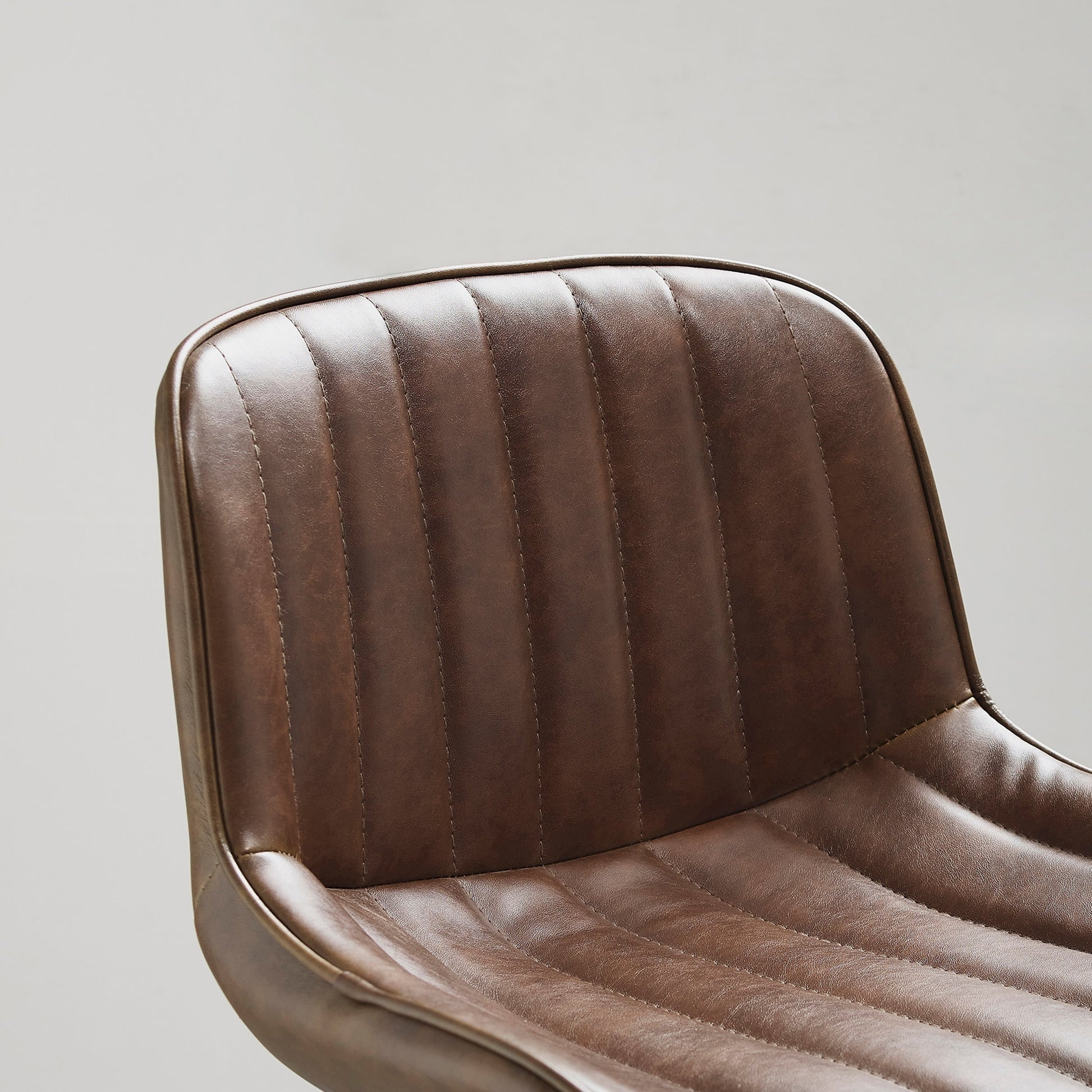 Apportez une touche de charme rétro à votre bar ou votre cuisine avec l'ensemble de tabourets de bar pivotants et réglables Art Leon. Ces élégants tabourets de bar présentent une assise profilée en similicuir, un dossier bas et un capitonnage strié classique, disponibles dans une palette de couleurs variée. Le pied central, proposé en noir sophistiqué ou en chrome élégant, est doté d'un système de vérin à gaz permettant un réglage en hauteur facile, et intègre un repose-pieds pratique. Pivotant à 360° et dotés d'une structure métallique robuste, ces tabourets sans accoudoirs sont parfaits pour recevoir vos invités avec style.