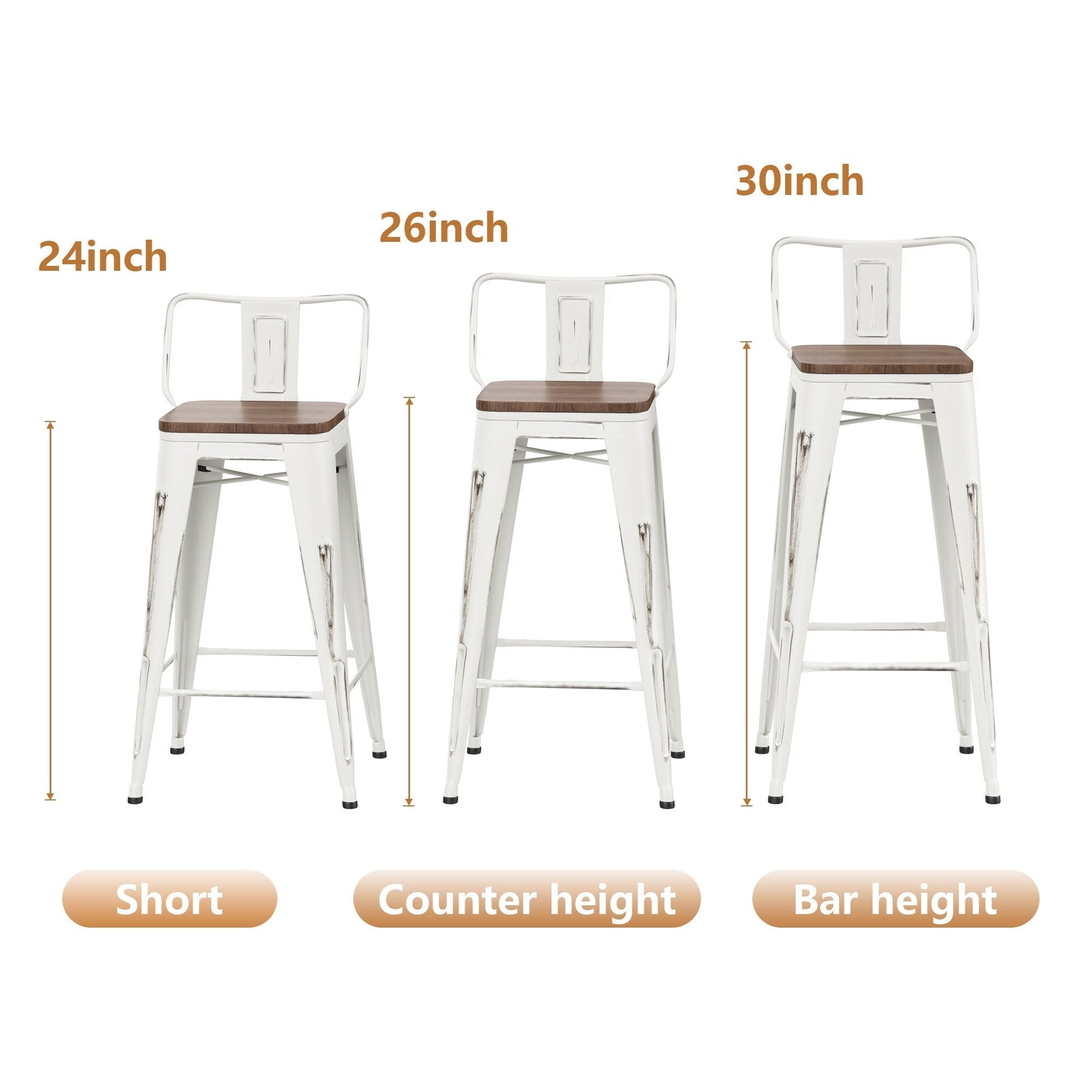Rehaussez le style industriel de votre maison ou restaurant avec ces tabourets de bar à dossier. Chaque ensemble comprend quatre tabourets robustes en métal avec dossiers amovibles, faciles à empiler et à ranger. Disponibles en trois hauteurs (basse, comptoir et bar), ces tabourets s'intègrent parfaitement à tous les espaces, de la salle à manger au bar. Leurs assises en bois et leur finition durable par pulvérisation électrostatique leur confèrent style et longévité, tandis que leur structure en croix et leurs pieds en caoutchouc antidérapants assurent stabilité et protection des sols.