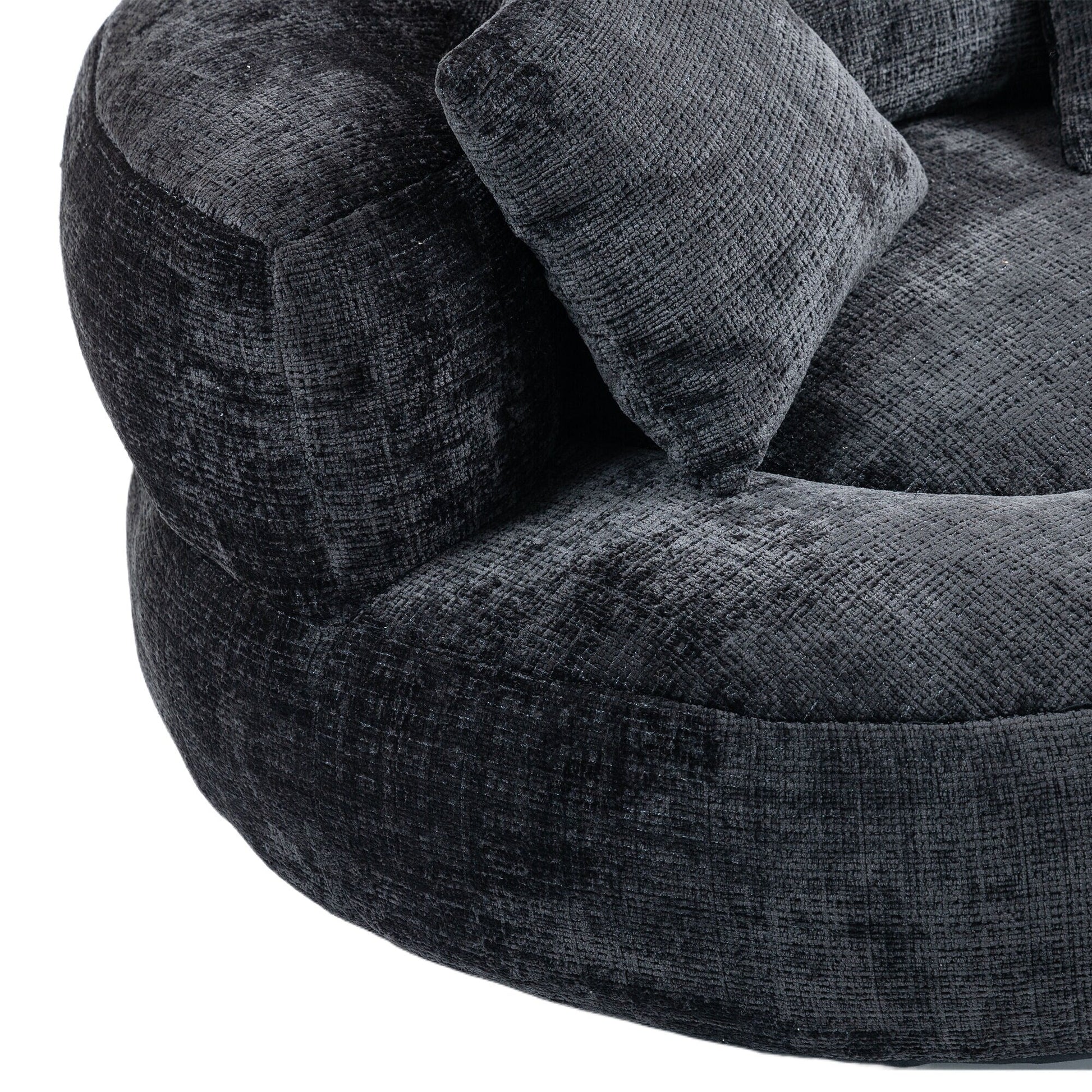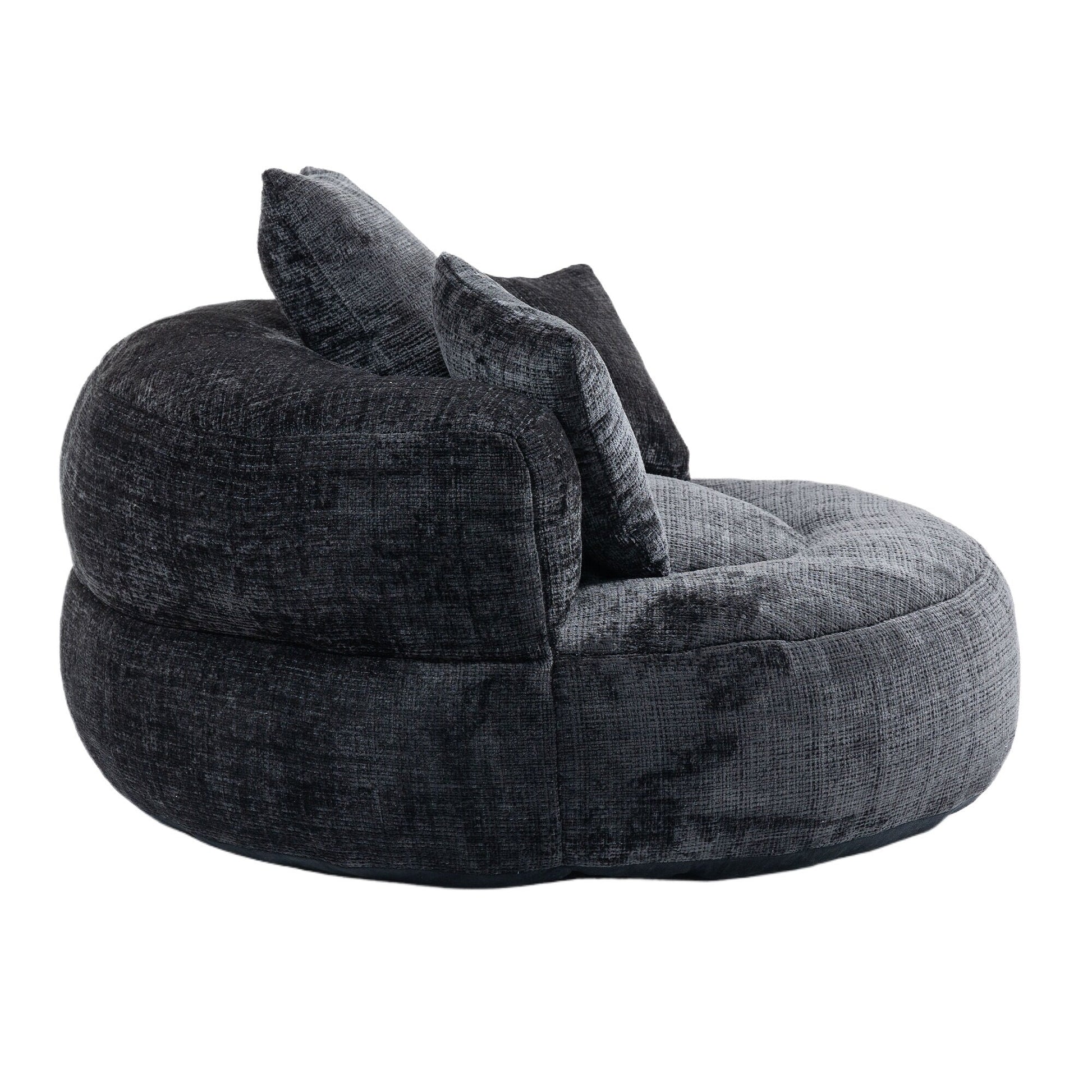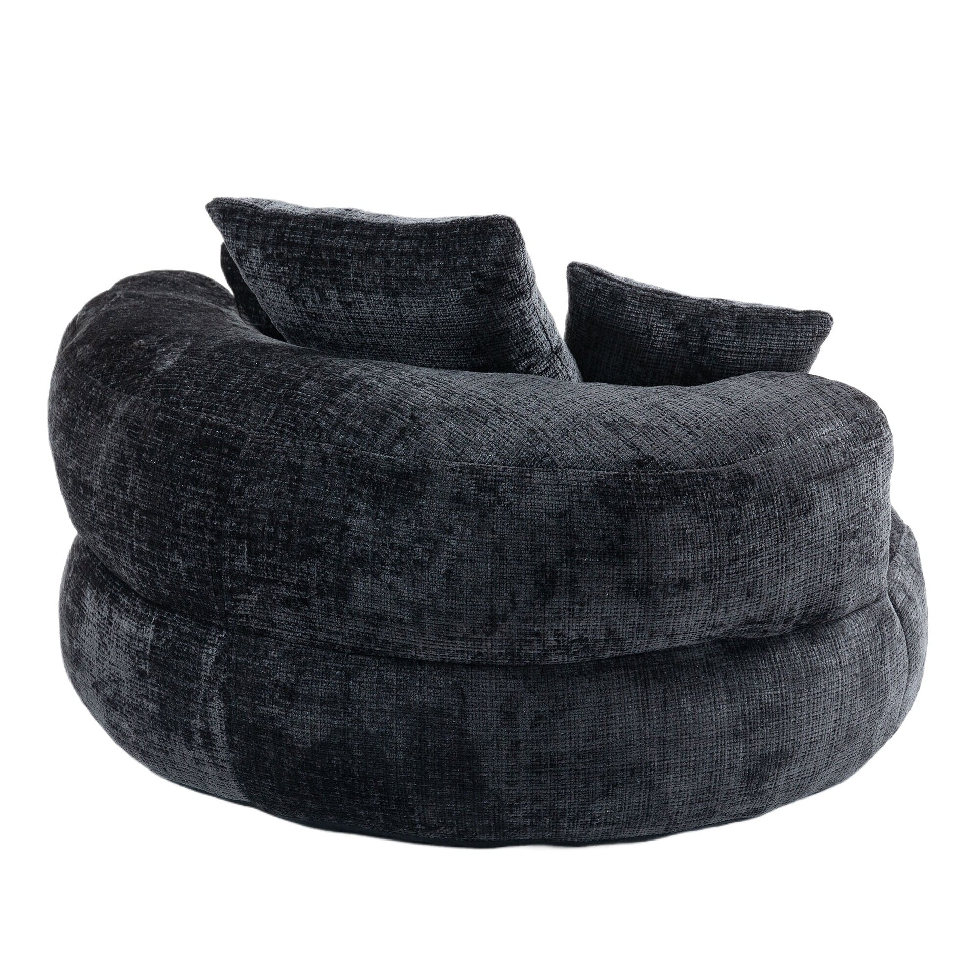 Pouf poire géant noir surdimensionné en chenille de 42,52 pouces avec trois coussins pour chambre à coucher