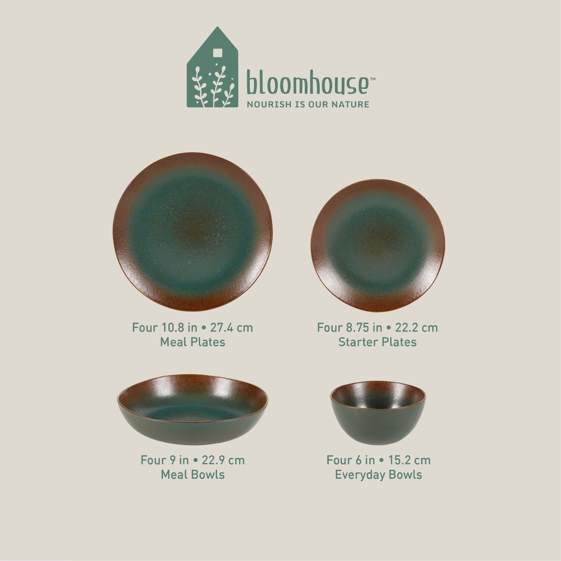 Service de table Bloomhouse Palermo Sun 16 pièces en grès à double bol et émail réactif
