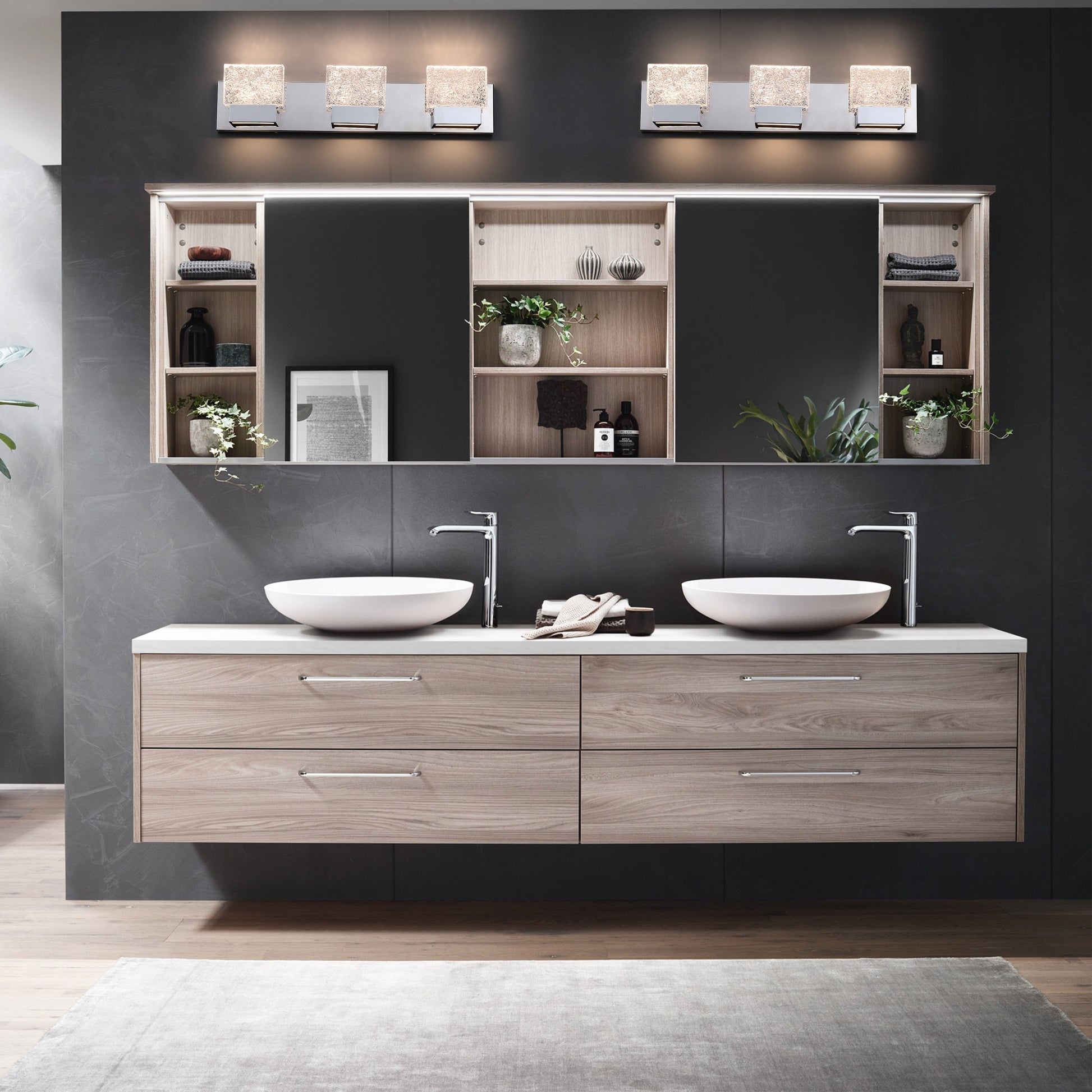 Modernisez votre salle de bain avec cette applique murale LED élégante et écoénergétique en acier inoxydable chromé, dotée d'abat-jour en verre artistique. Les abat-jour en verre transparent effet brique apportent une touche contemporaine qui s'harmonise avec tous les styles de décoration. Fabriquée en acier inoxydable durable et équipée de modules LED intégrés dans un diffuseur en acrylique, cette applique sans entretien est idéale pour votre salle de bain.