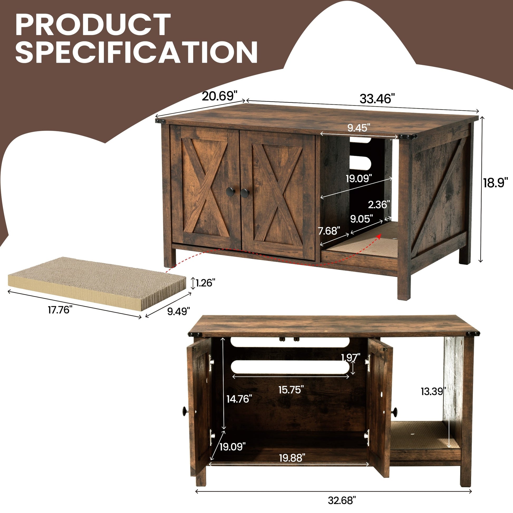 - Un meuble de décoration classique s'harmonisant avec tous les styles d'intérieur. Une façon très élégante de dissimuler le bac à litière pour chat.