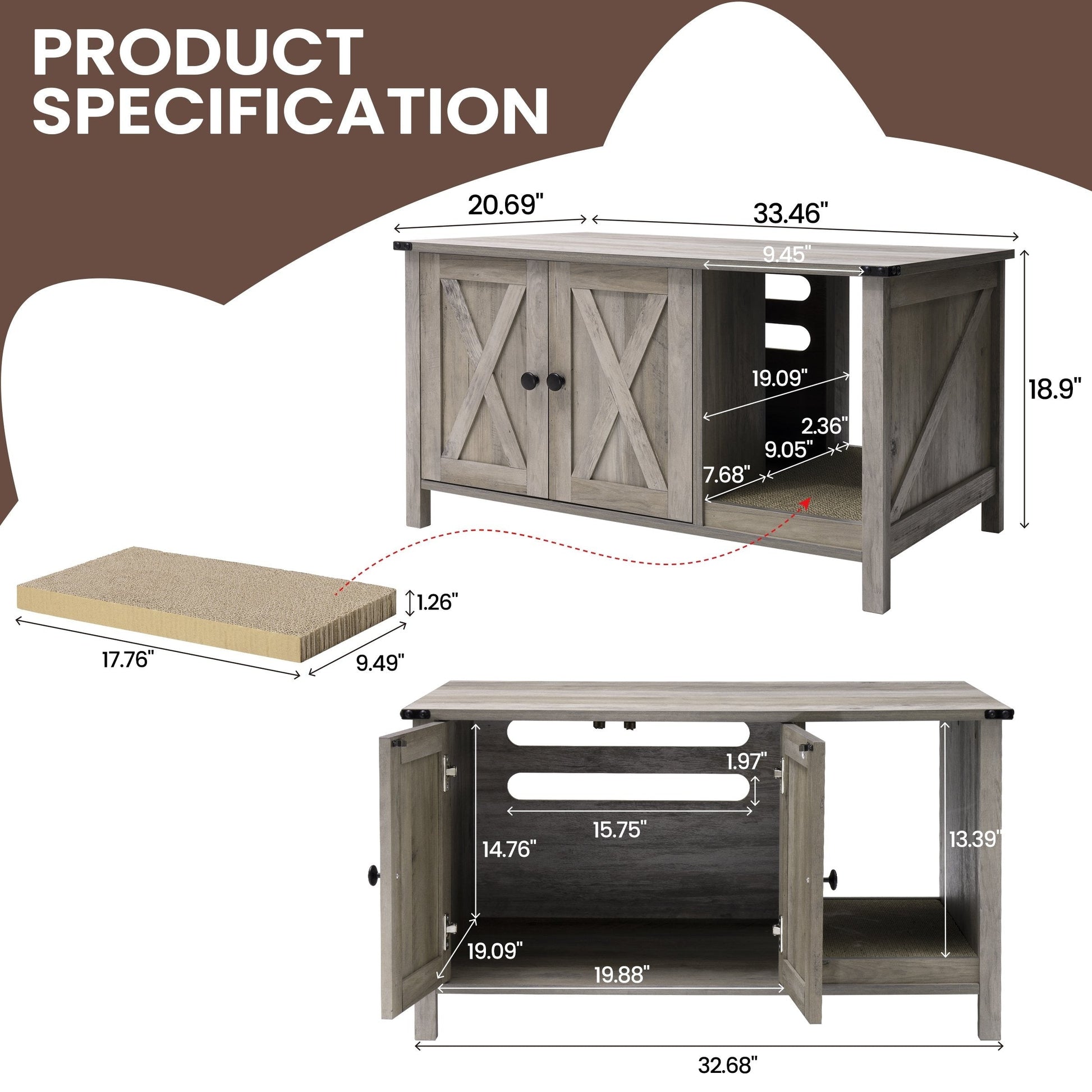 - Le bac à litière pour chat peut être placé ( bac à litière NON inclus ), dans un endroit ventilé, ce qui favorise la circulation de l'air et le passage de la lumière ;