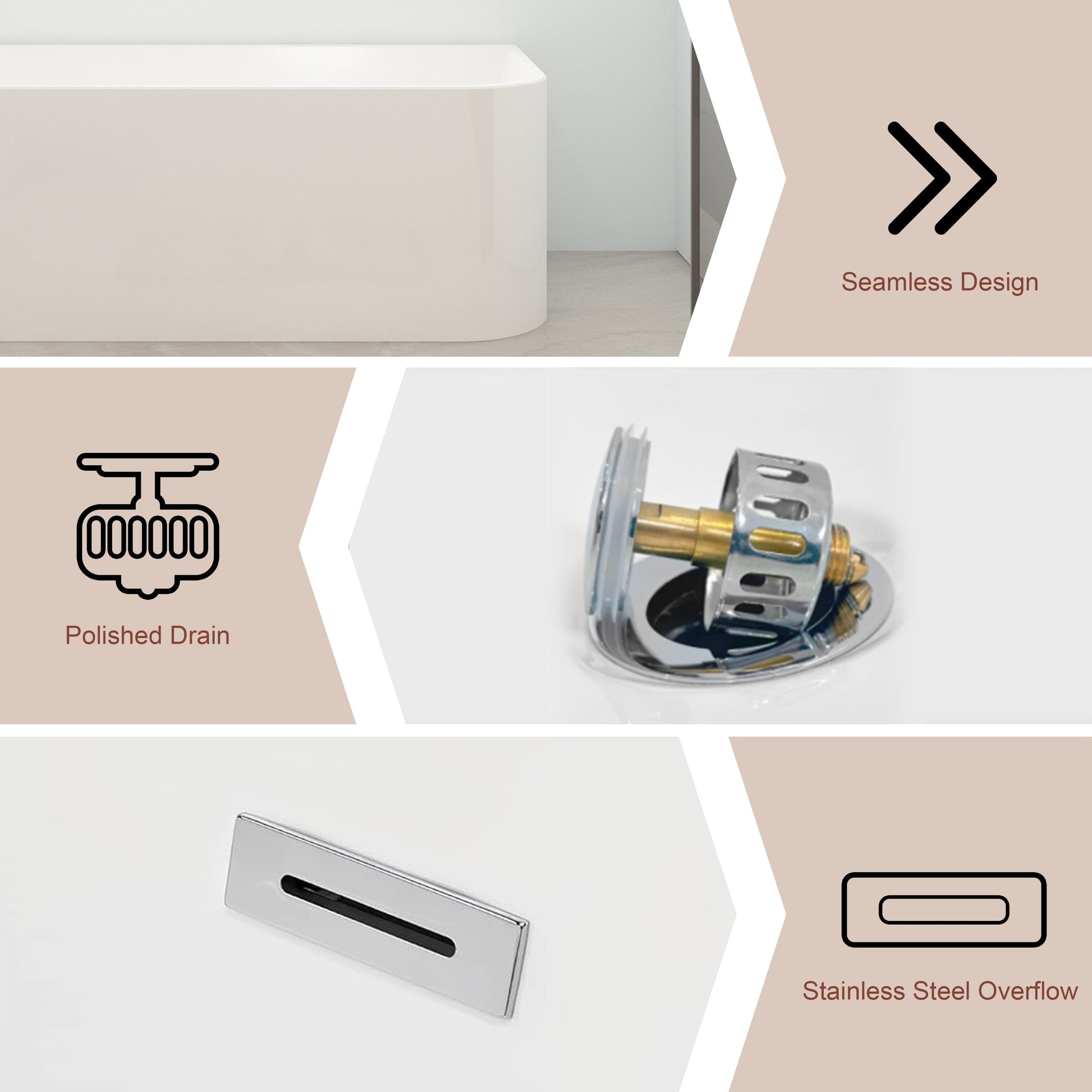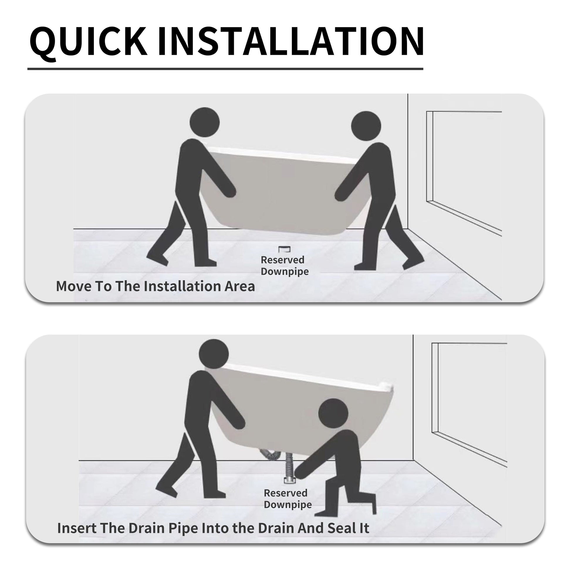 •【 Installation facile et gain de place】 : Tout le matériel de montage est inclus dans l'emballage de la baignoire pour vous faire gagner du temps. Un manuel d'utilisation est également fourni, détaillant les étapes d'assemblage et de fixation au sol. La conception à un seul côté contre le mur permet une meilleure intégration et un gain de place, ce qui est idéal pour les petites salles de bain.
