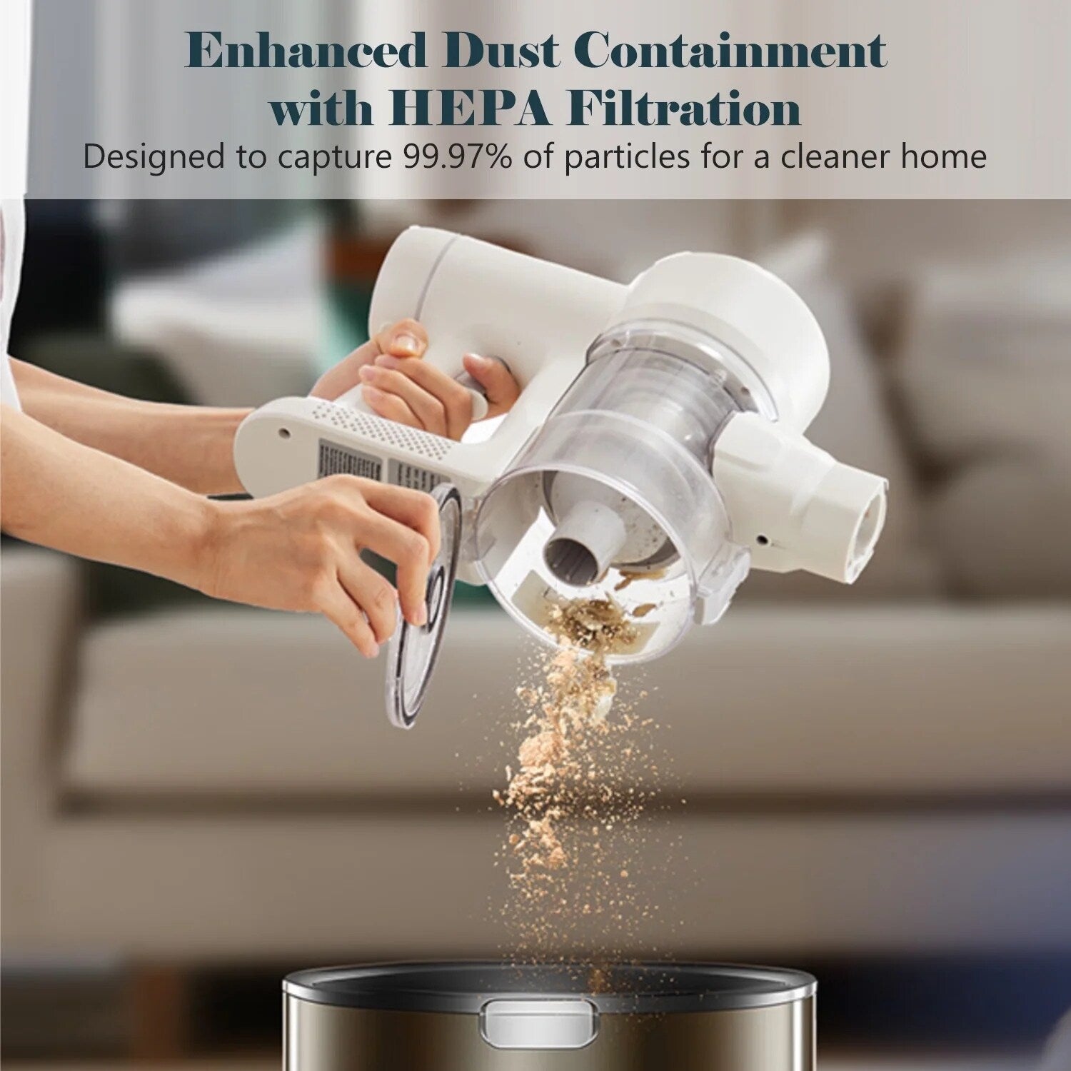 - [Filtration HEPA] : Doté d’un système cyclonique étanche avec filtre HEPA, cet appareil capture les poussières fines et les allergènes, prévenant ainsi la pollution de l’air. Le vidage du bac à poussière se fait d’une simple pression pour un nettoyage rapide.