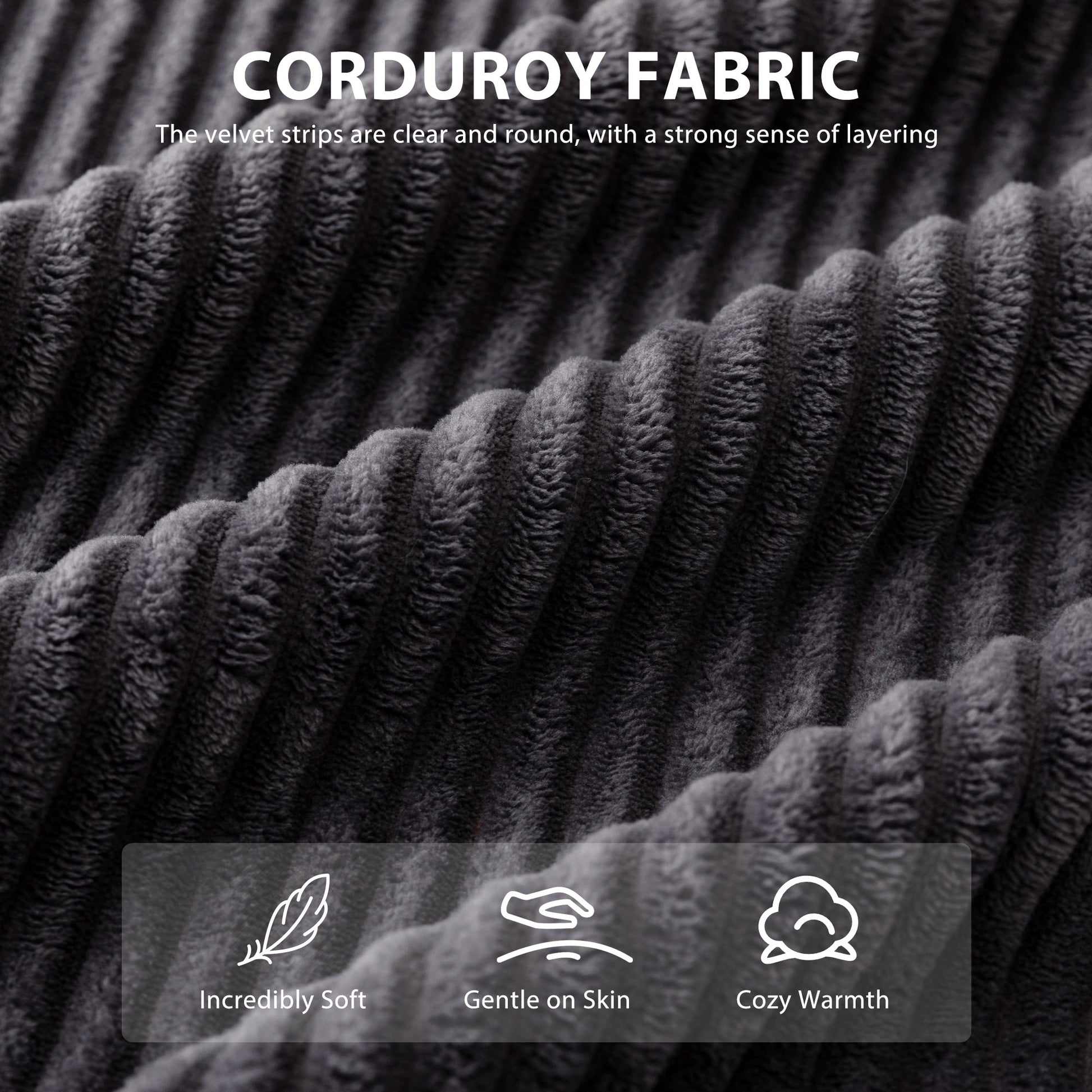 Canapé en velours côtelé avec pouf intégré et mousse à mémoire de forme - 123 cm (L) x 172 cm (l) x 62 cm (H)