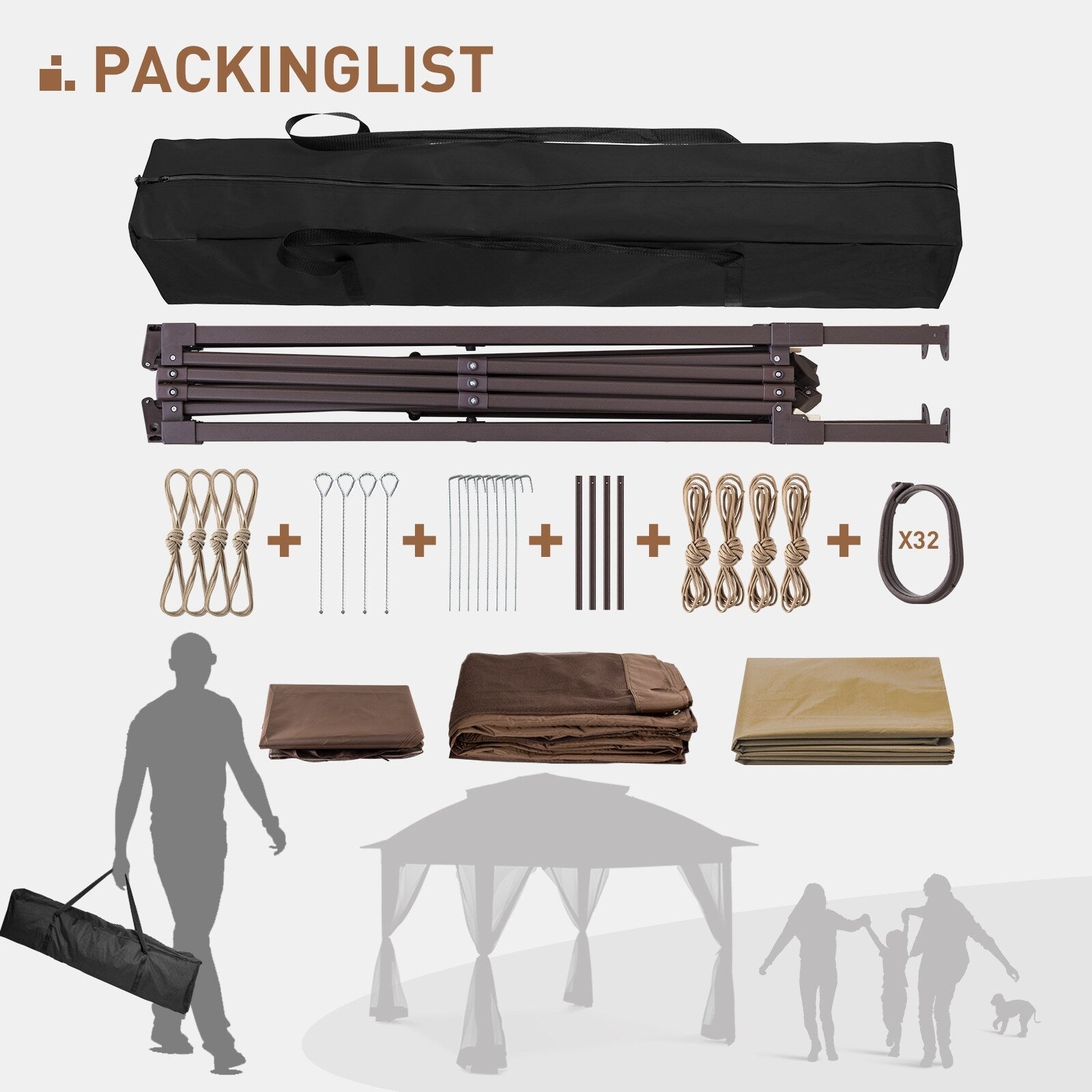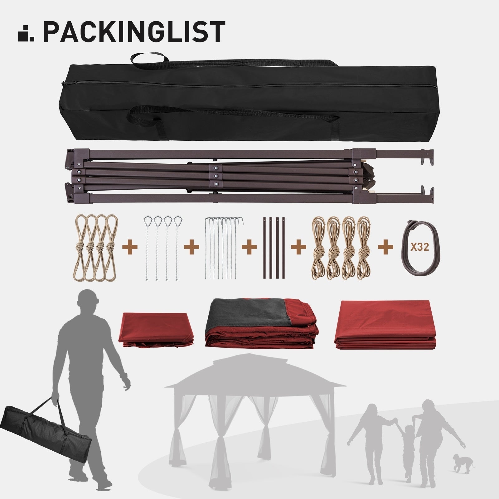 - STRUCTURE ROBUSTE - Ce gazebo pliable est étonnamment robuste malgré sa légèreté. Sa structure est fabriquée en acier de haute qualité et revêtue d'une peinture en poudre antirouille. Composée de plusieurs barres de renfort qui s'emboîtent solidement, elle est difficile à plier ou à déformer. (Piquets et cordes d'ancrage inclus)