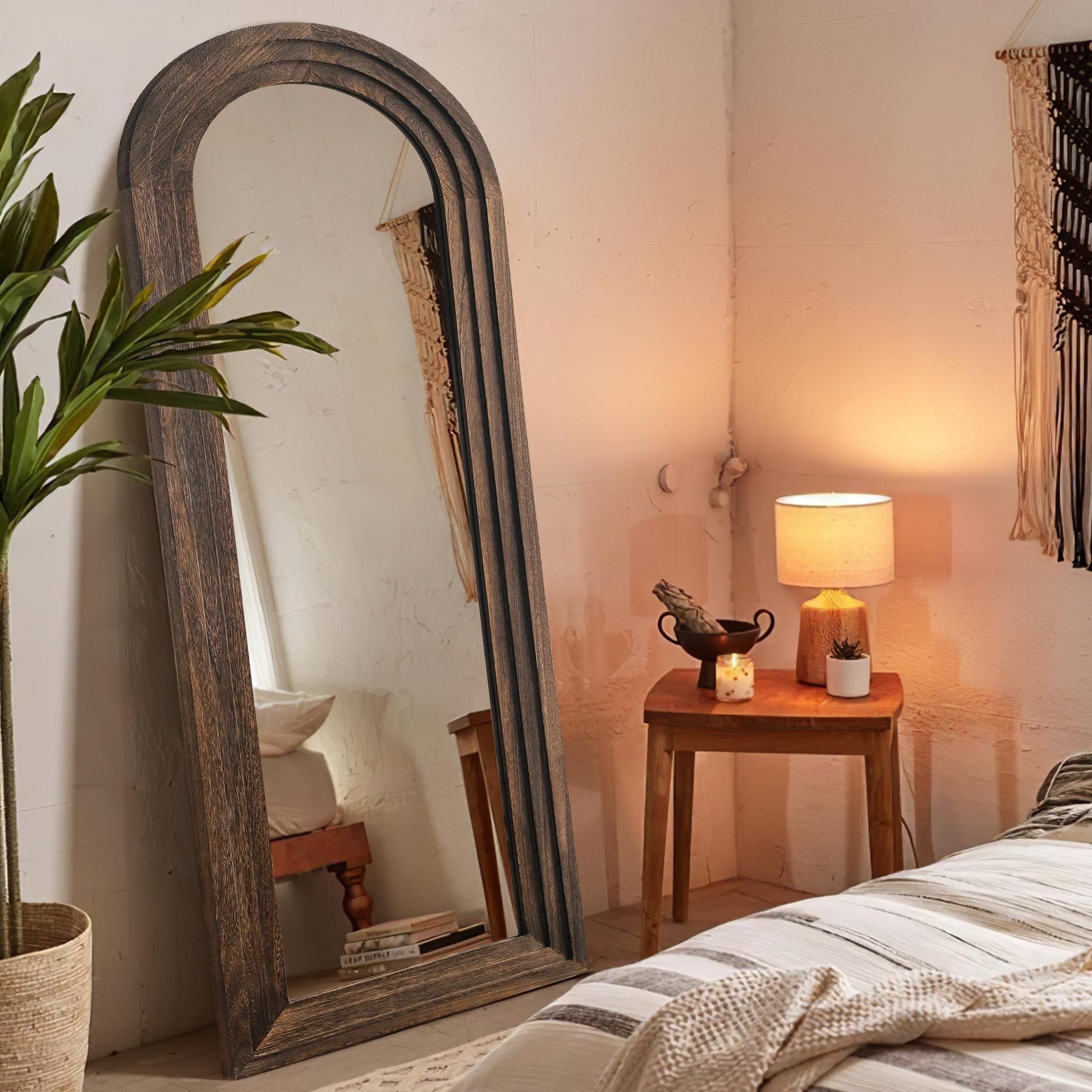 Miroir sur pied pleine longueur Dovelina rustique en bois vieilli arqué