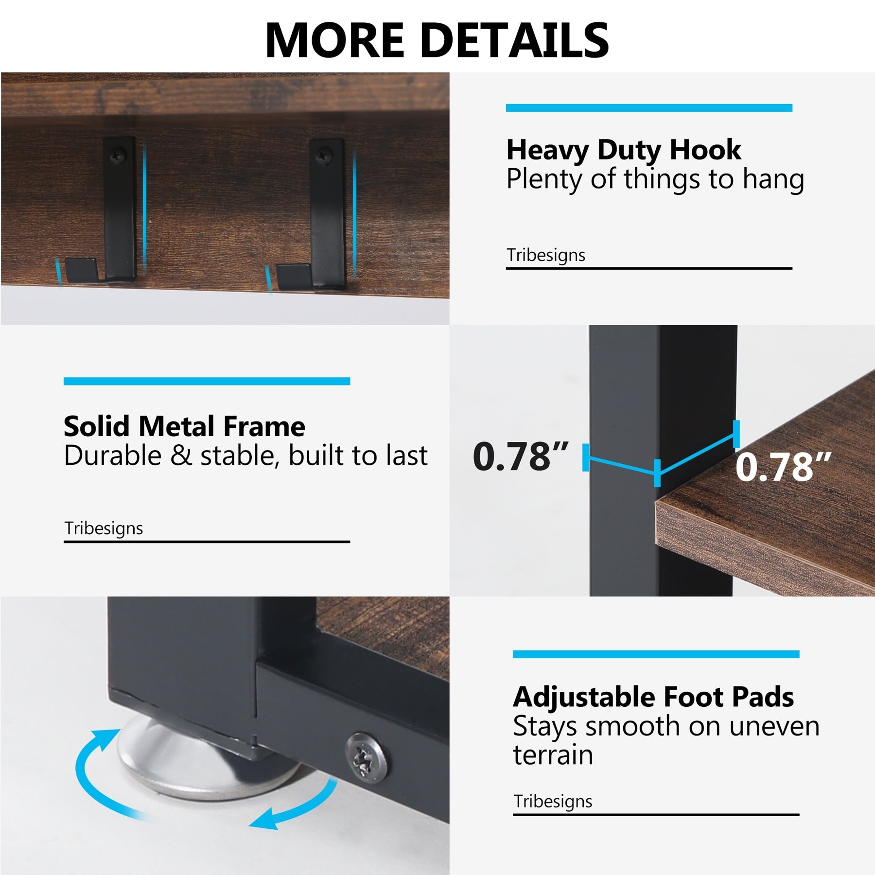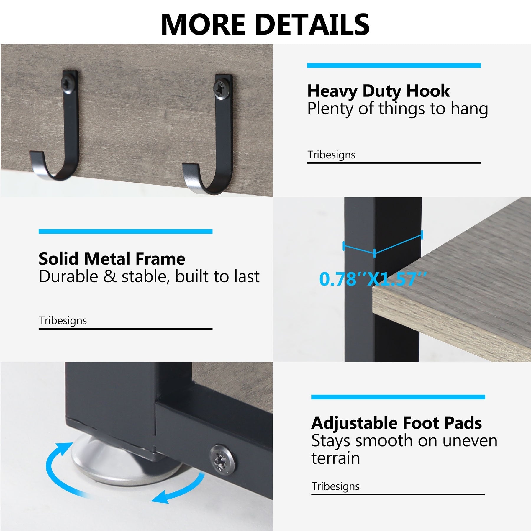 - Banc à chaussures multifonctionnel 5 en 1 avec 7 crochets, 3 compartiments de rangement, une étagère supérieure, un range-chaussures à 3 niveaux et un banc à chaussures.