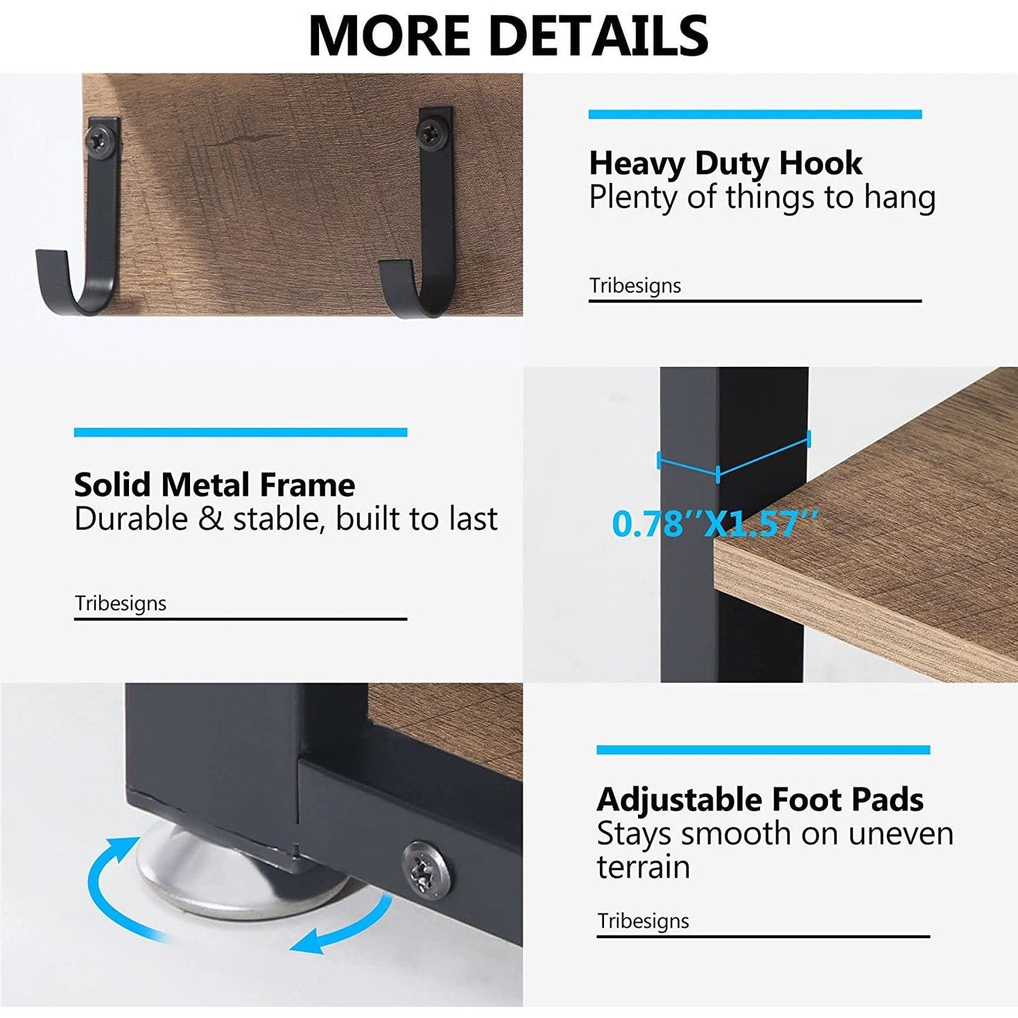 Organisez votre entrée avec style grâce à ce charmant porte-manteau et chaussures de style industriel. Son allure à la fois sophistiquée et rustique s'harmonisera parfaitement avec votre mobilier et apportera une touche vintage à votre intérieur. Ce meuble d'entrée multifonctionnel avec banc intégré fait office de porte-manteau, de banc à chaussures et d'espace de rangement, ce qui le rend idéal pour les entrées, les couloirs, les halls, les chambres et les salons.