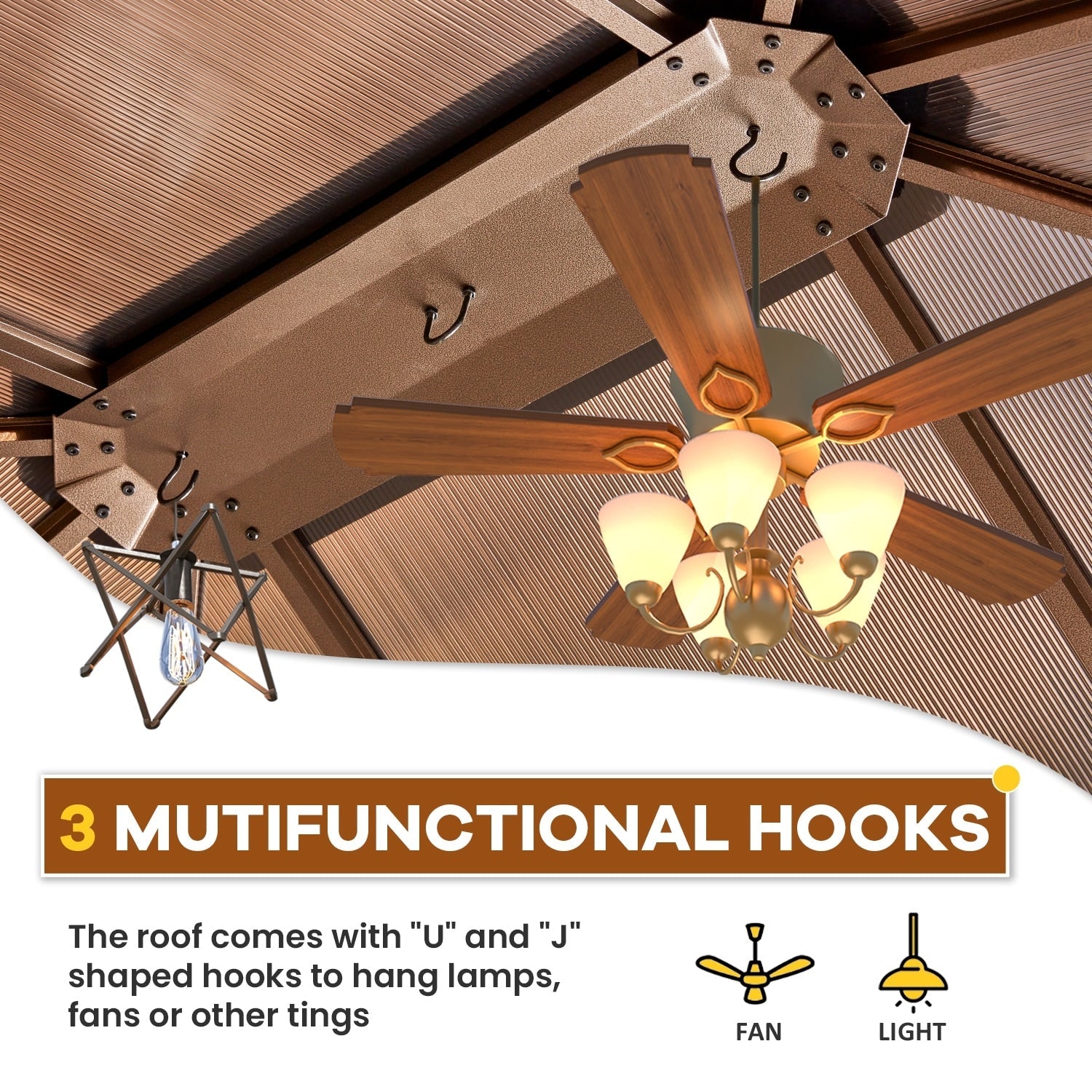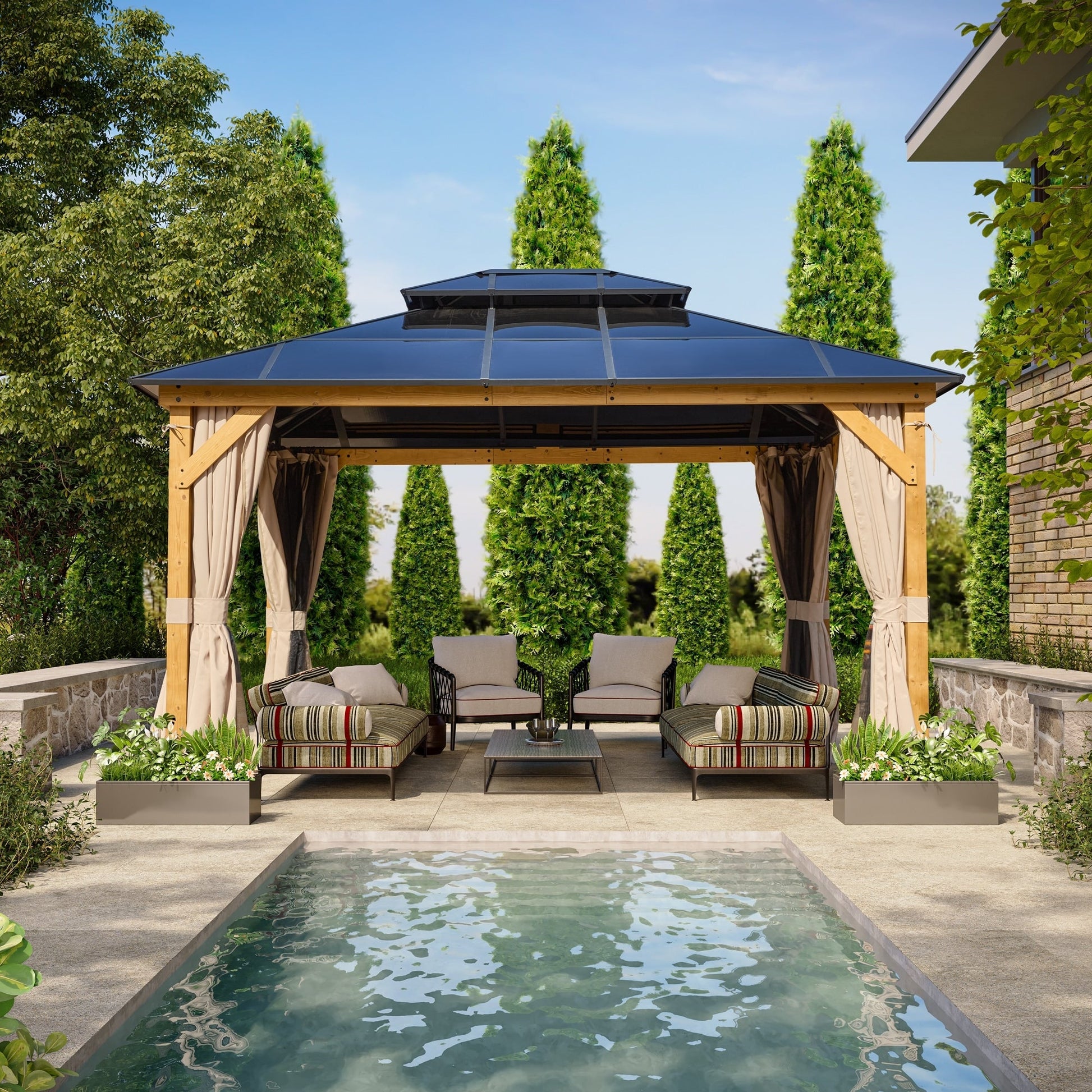 Gazebo rigide EROMMY, pergola d'extérieur avec double toit, moustiquaire et rideaux, auvent robuste pour terrasse, jardin, fête au bord de la piscine
