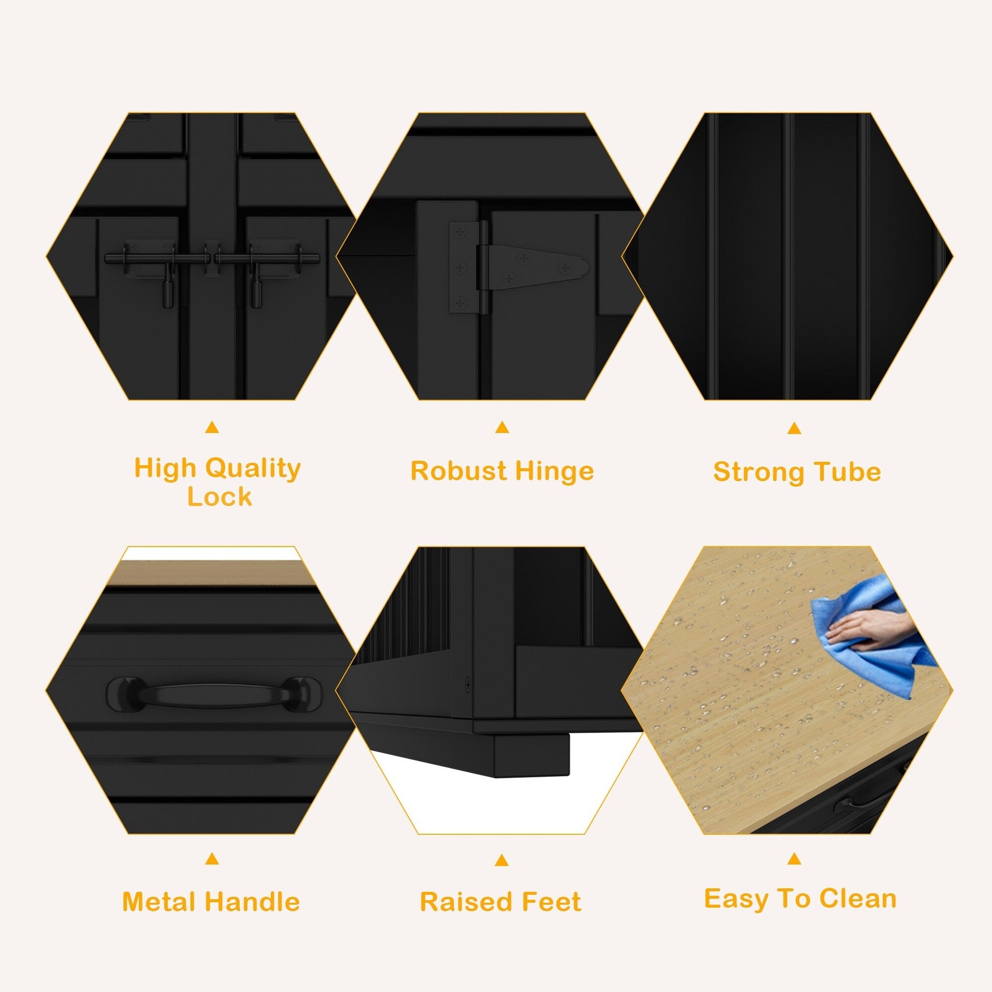 ●【MEUBLE ÉLÉGANT POUR CAGE À CHIEN】 Cette cage à chien design pour l'intérieur apportera une touche d'élégance à n'importe quel espace. Son coloris noir et naturel, à la fois sobre et raffiné, s'harmonisera avec tous les styles de décoration et sera parfaite à côté d'un meuble TV, d'une étagère ou d'un support pour plantes.