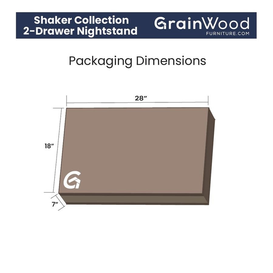 Table de chevet Shaker en bois massif à 2 tiroirs, style Shaker, avec grain de bois