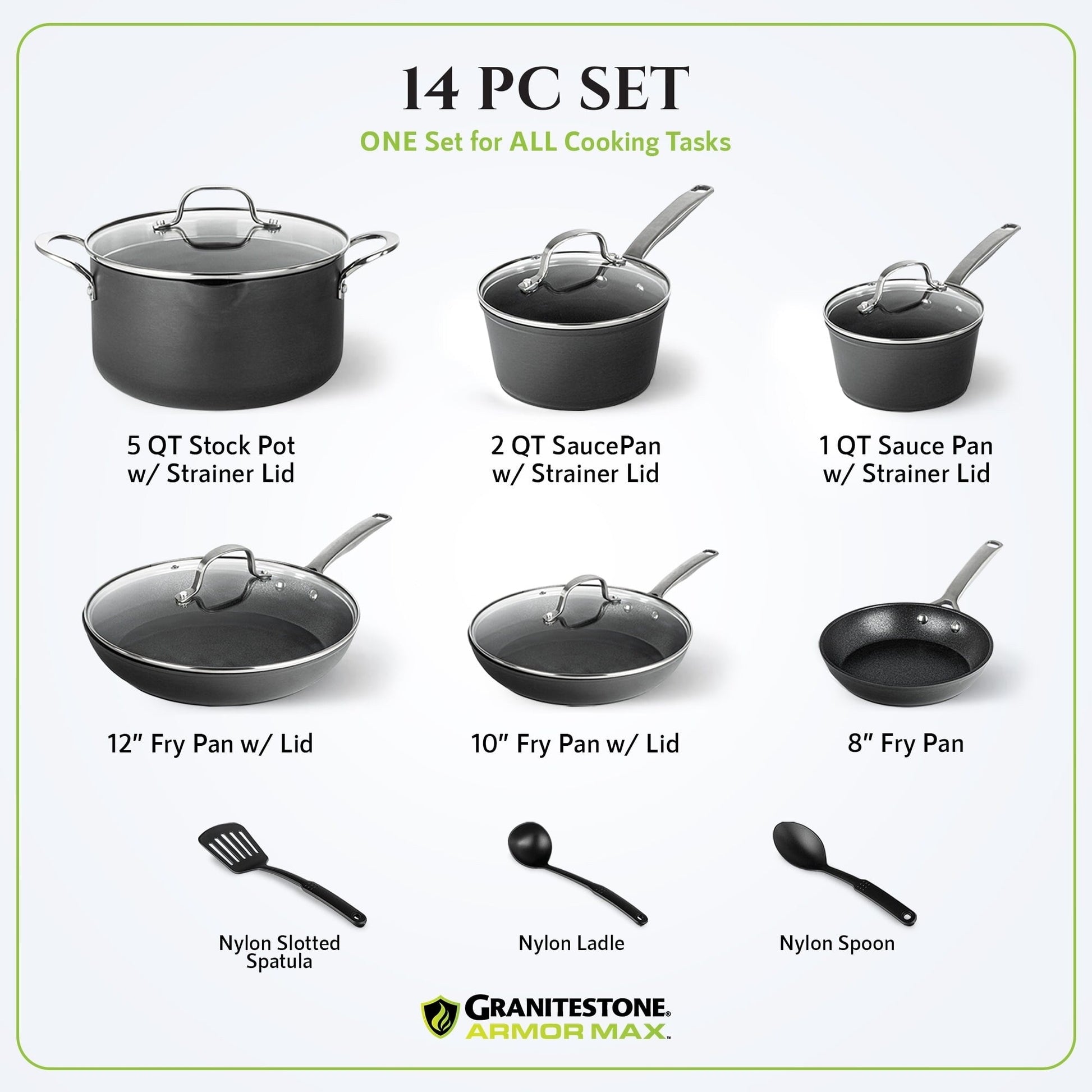 Ensemble de 14 pièces de batterie de cuisine Granitestone Armor Max en aluminium anodisé dur