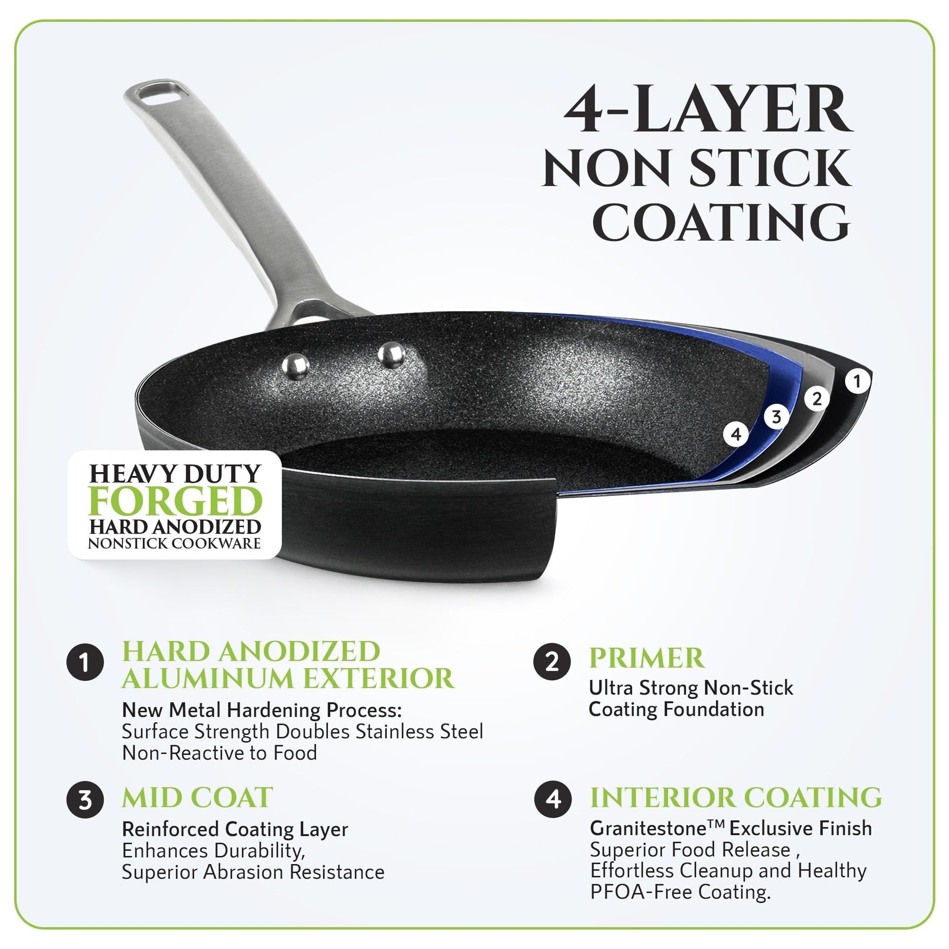 - CONÇU POUR DURER DES ANNÉES : Granitestone Armor Max est fabriqué en aluminium forgé, anodisé dur et ultra-résistant, plus solide que l’acier inoxydable, ce qui garantit une longue durée de vie à vos ustensiles de cuisine antiadhésifs.
