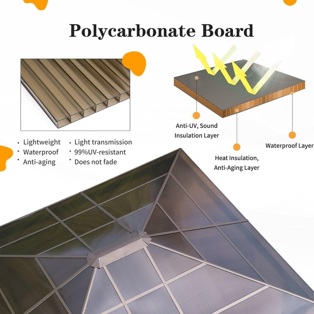 Gazebo rigide pour jardin – Pergola permanente avec moustiquaire, rideaux et double toit, abri extérieur toutes saisons