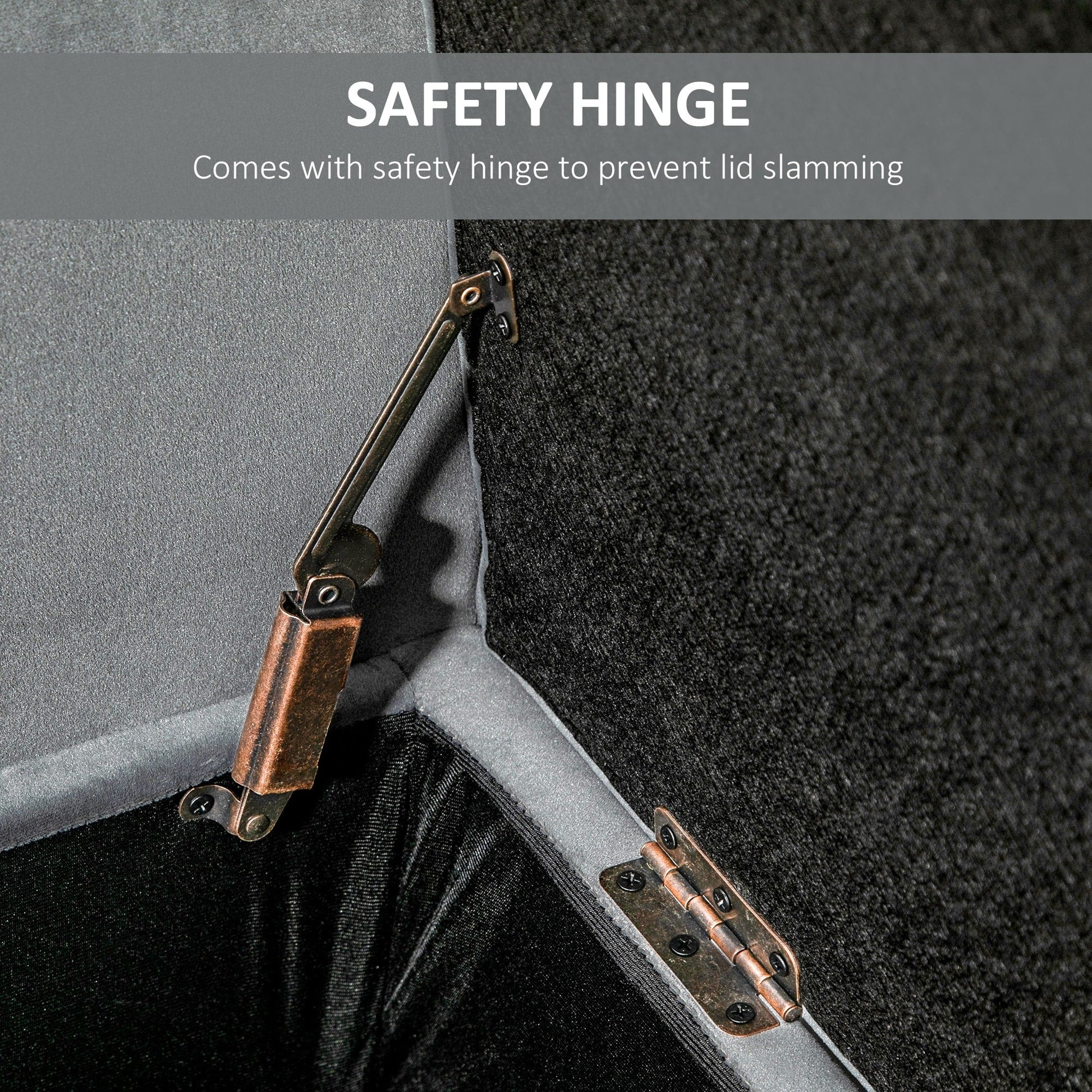 Apportez une touche de glamour et de fonctionnalité à votre intérieur avec ce banc coffre capitonné de HOMCOM. Son revêtement en polyester doux au toucher et ses accoudoirs arrondis en font un meuble élégant et confortable qui s'intègre parfaitement à toutes les pièces, tandis que son assise rabattable offre un espace de rangement généreux pour livres, jouets ou couvertures. Ses pieds robustes en hévéa garantissent stabilité et durabilité. Ce meuble élégant, idéal pour une entrée, un salon ou un coin fenêtre, est livré en kit.