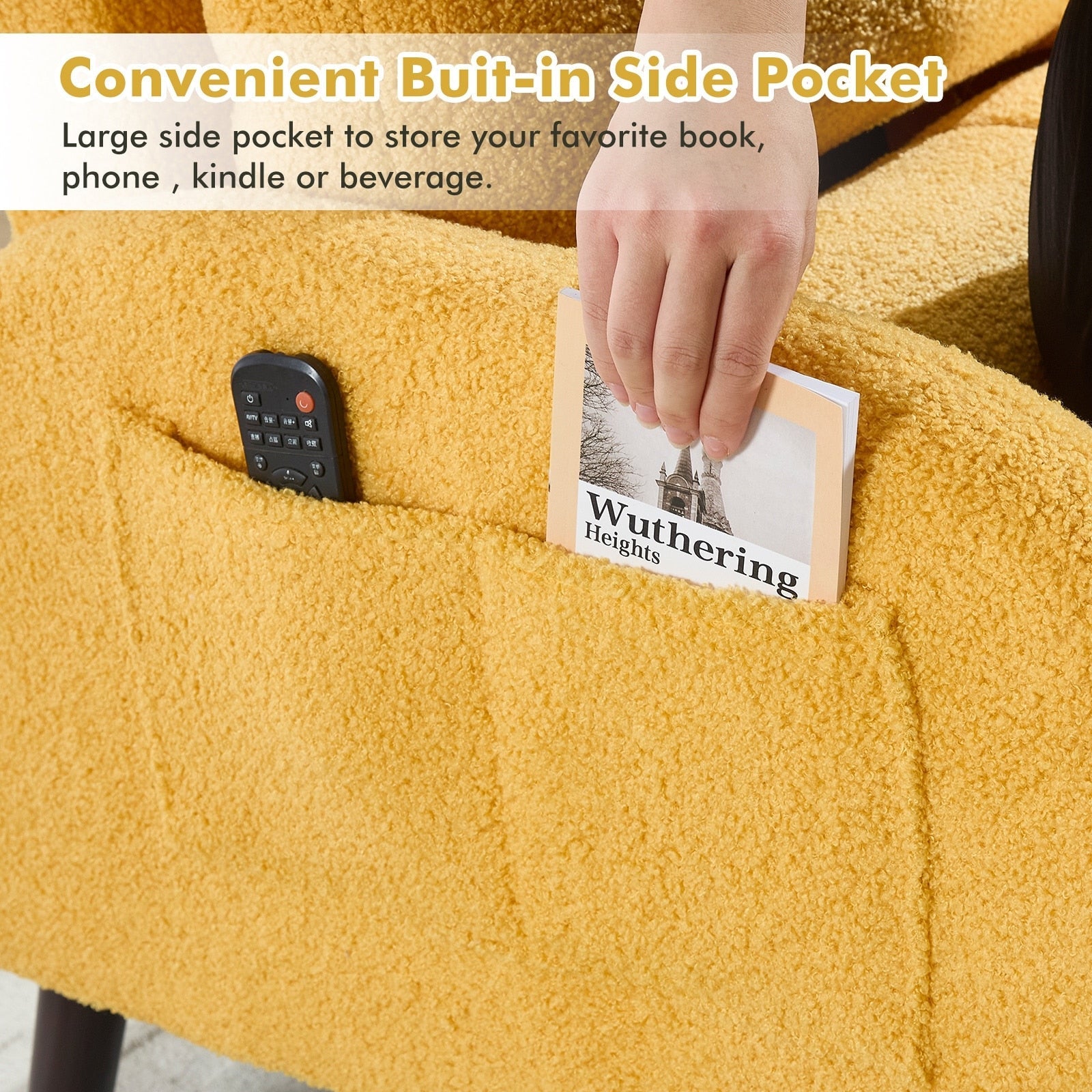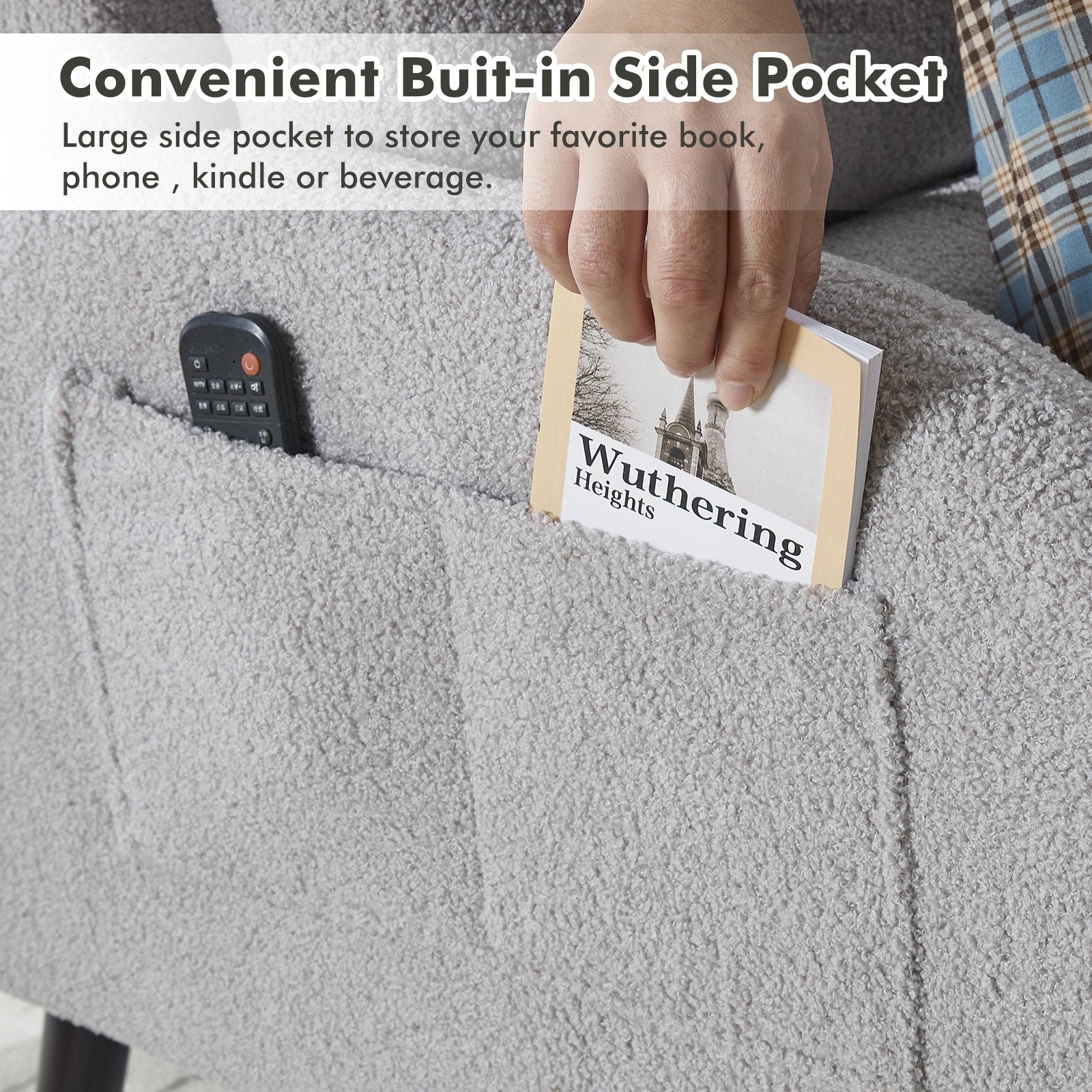 - Solution de rangement polyvalente : Le fauteuil d’appoint avec repose-pieds offre une solution de rangement pratique grâce à une grande poche latérale. Cet atout supplémentaire vous permet de garder vos objets essentiels à portée de main, optimisant ainsi la fonctionnalité de votre espace de vie tout en préservant son ordre.