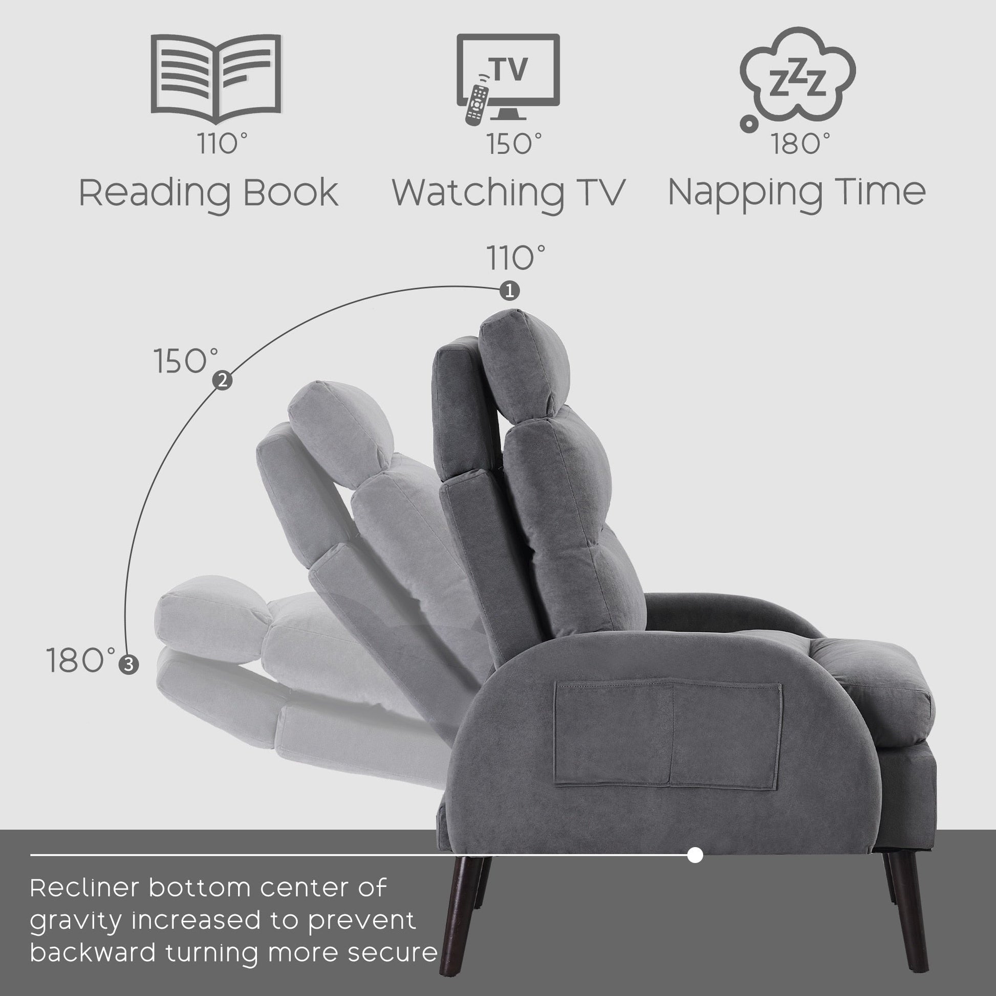 - Confort ajustable : Doté de trois positions d’inclinaison du dossier (110°, 150° et 180°), ce fauteuil d’appoint est conçu pour s’adapter à différentes préférences d’assise et besoins de détente. Que vous vous prélassiez, lisiez ou regardiez la télévision, vous pouvez facilement ajuster le fauteuil pour trouver la position idéale et un confort optimal.