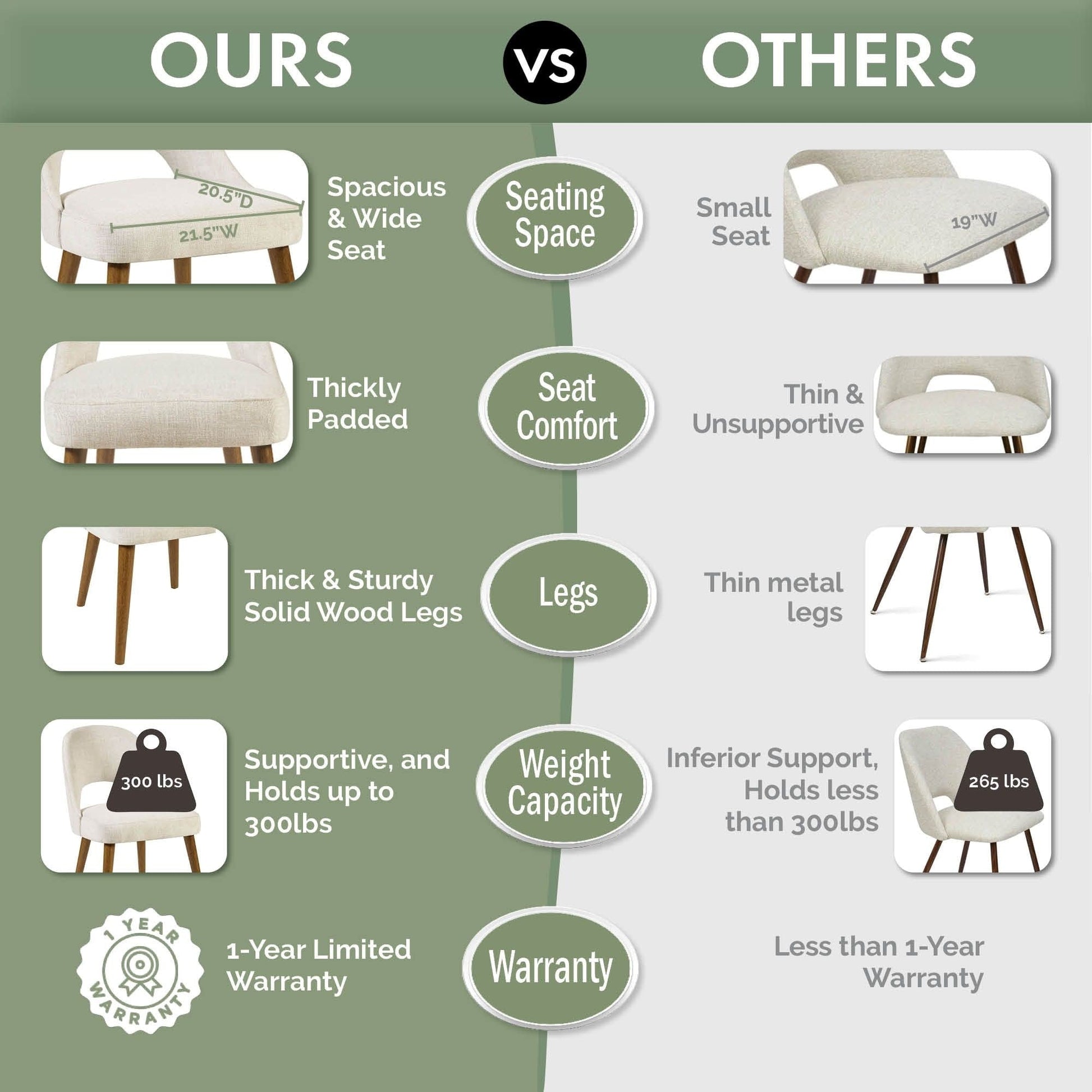 Sublimez votre intérieur avec les chaises de salle à manger Nola d'INK+IVY (lot de 2). Ces chaises polyvalentes, au style moderne du milieu du siècle, présentent un dossier ajouré incurvé et des pieds en bois évasés, pour un design élégant et compact qui se glisse facilement sous les tables. Revêtues d'un tissu doux, résistant et facile d'entretien, elles sont dotées d'une assise épaisse en mousse haute densité offrant un confort et un soutien exceptionnels, même lors de longues heures d'utilisation. Conçues pour durer, chaque chaise supporte jusqu'à 136 kg (300 lb), et l'ajourement du dossier sert de poignée pratique pour les déplacer aisément. Idéales pour les salles à manger, les salons, les chambres, les entrées, les bureaux et bien plus encore. Un assemblage simple et rapide des pieds est requis pour plus de praticité.