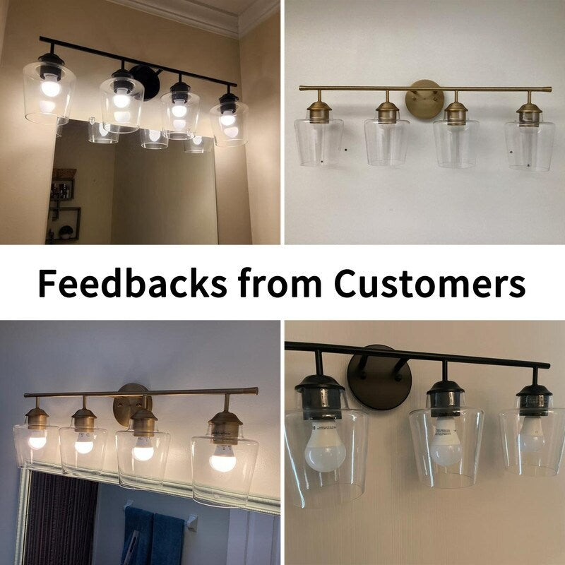 Applique murale de salle de bain KAWOTI à 4 lumières, intensité variable, en métal et avec abat-jour en verre