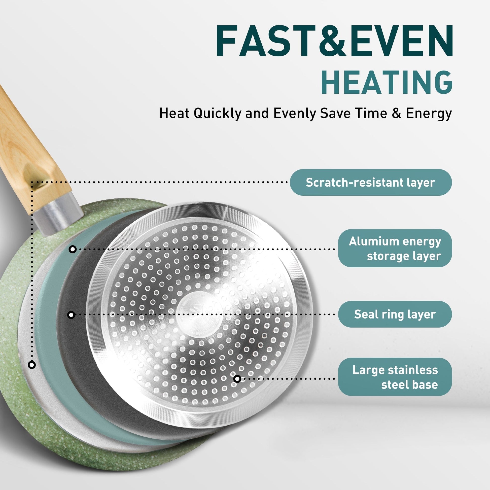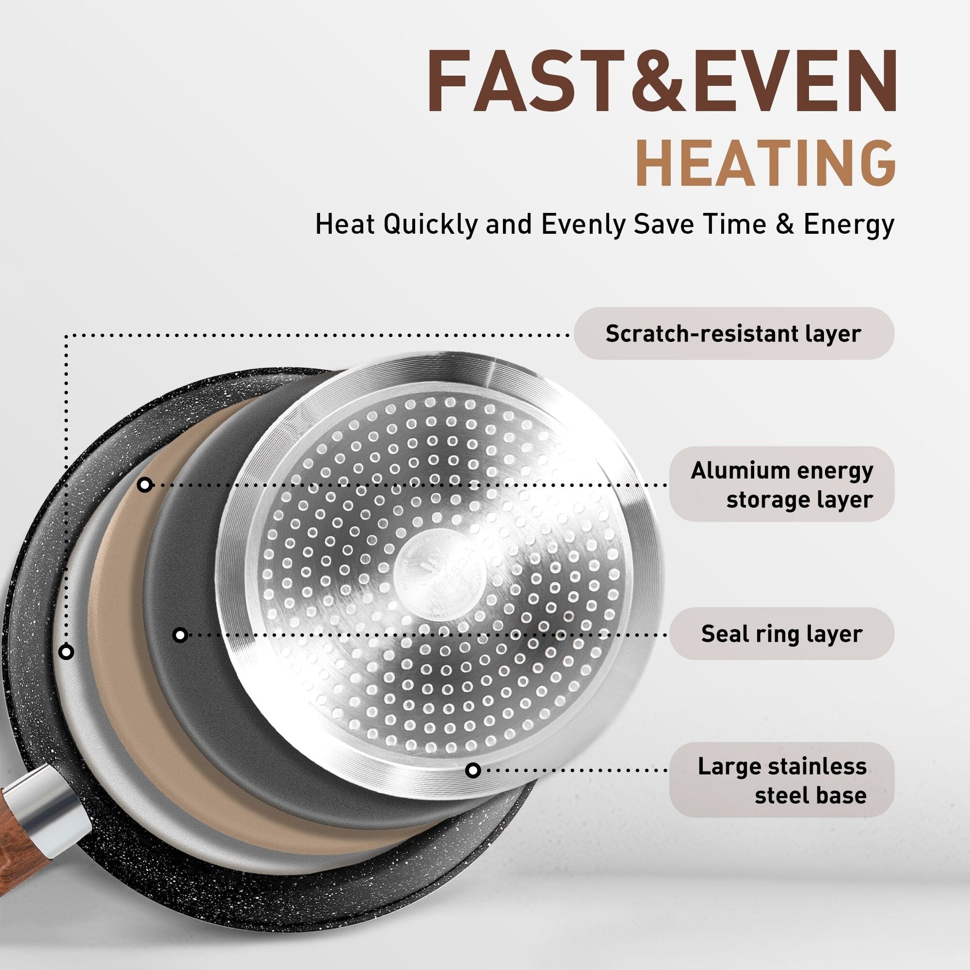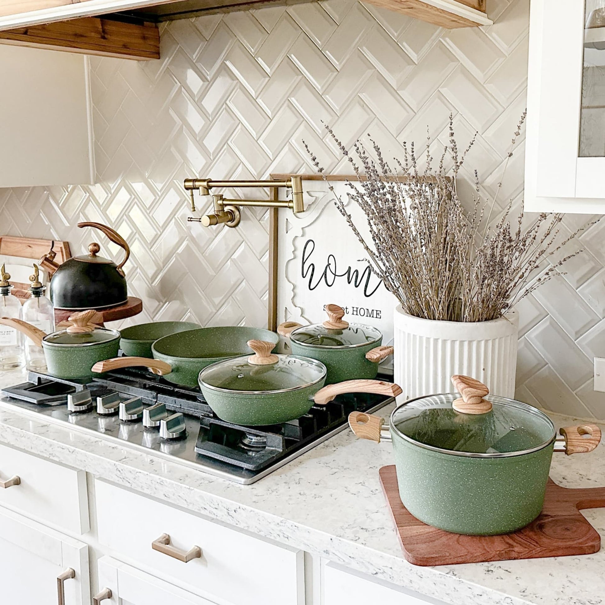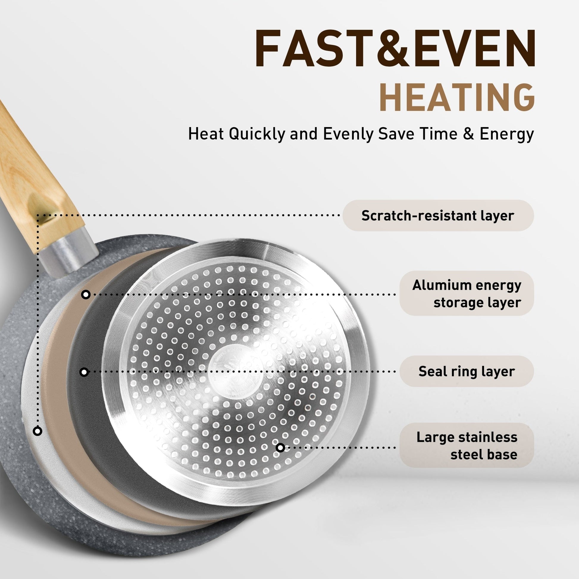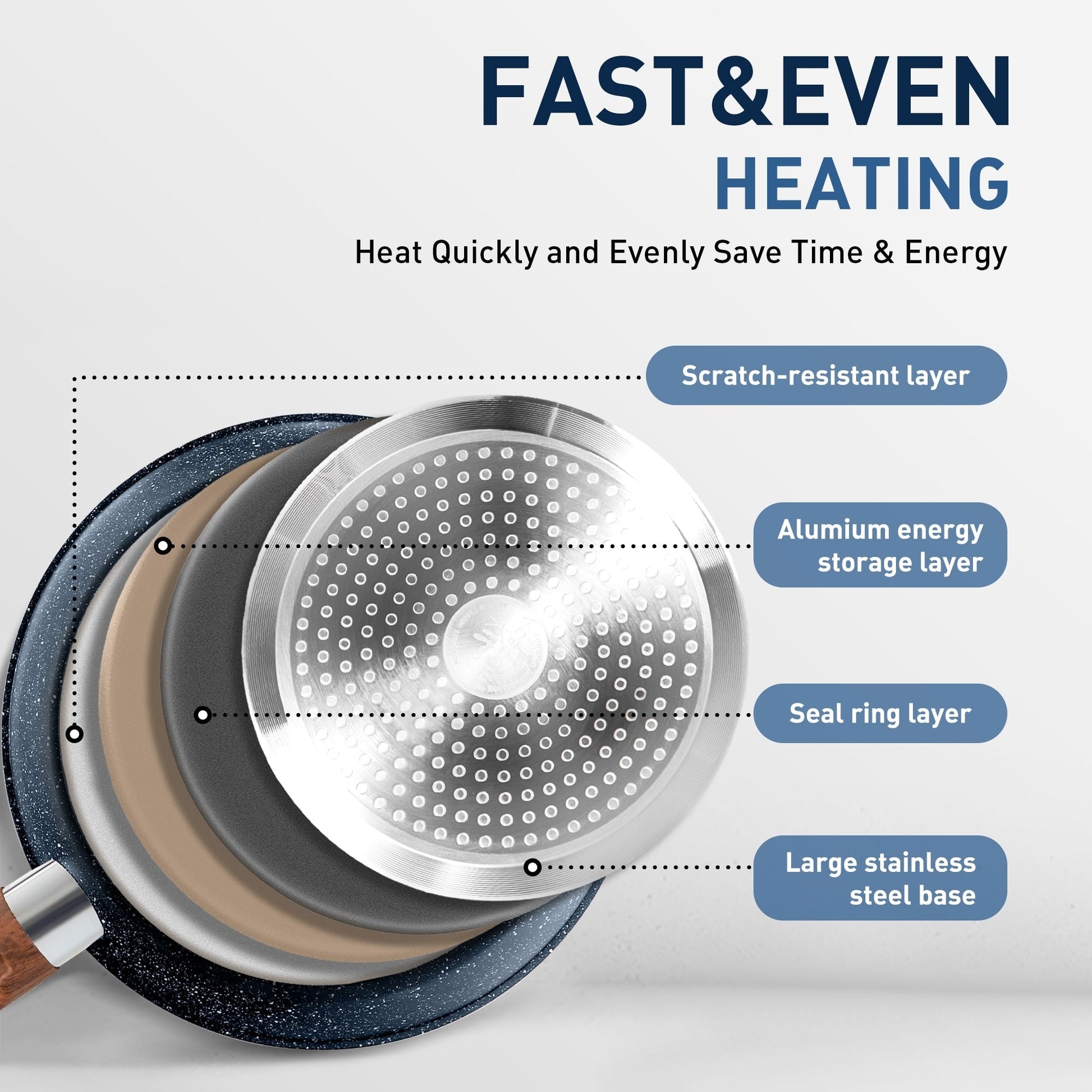 Batterie de cuisine antiadhésive, ensemble de 12 pièces (casseroles et poêles) en granit